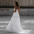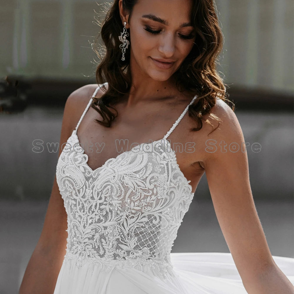 Chic Beach Wedding Dresses Customized Spaghetti Straps V Neck Sequin Lace Chiffon A Line Gowns High Slit Bridal Dress
