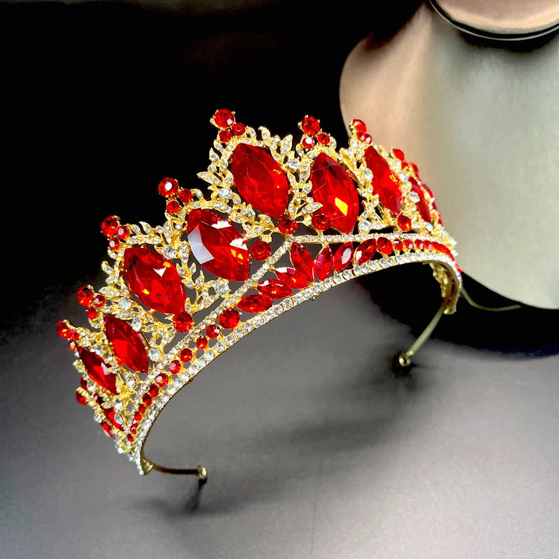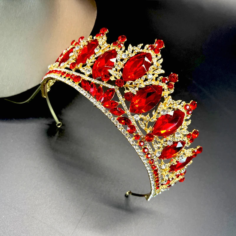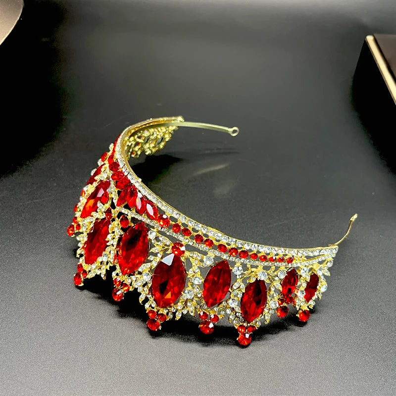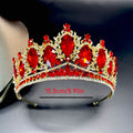 Classic Baroque Red Crystal Crown Wedding Large Luxury Water Diamond Shining Princess Crown Banquet Birthday Ball Hair Jewelry
