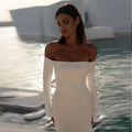 Classic Satin Wedding Dresses With Straight Shoulder For Woman Simple Lvory Bridal Gowns With Full Sleeves New Vestido De Novia