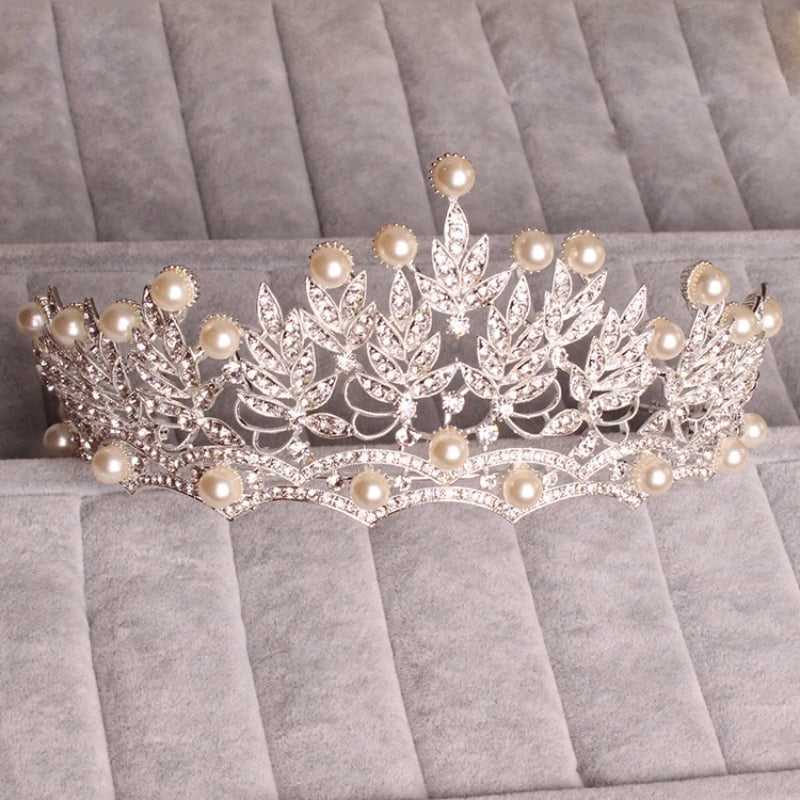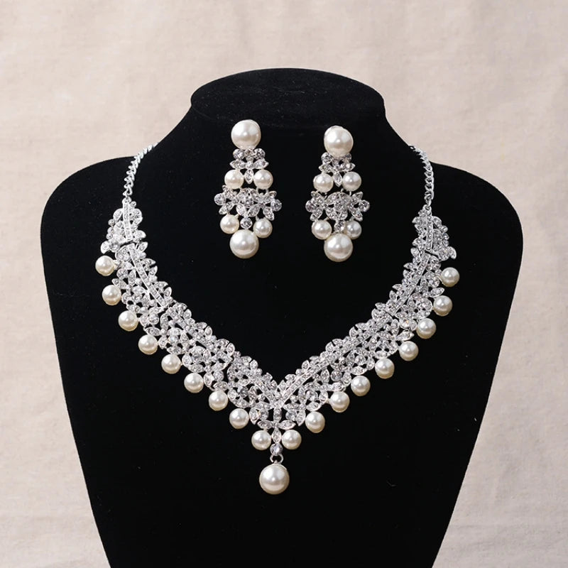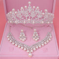Crystal Pearl Bridal Jewelry Set Rhinestone Necklace Earring Tiara Crown Set For Women Bride Party Queen Wedding Jewelry Set