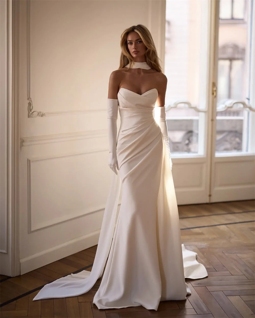 Custom Made Pleat Sweethart Satin Mermaid Wedding Dresses With Long Scalf Custom Made 2026 Rode De Morrie