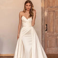 Customized 2 In 1 Detachable Train Wedding Dress 2026 Satin Sleeveless Simple Mermaid Princess Bride Gowns Vestido De Noiva