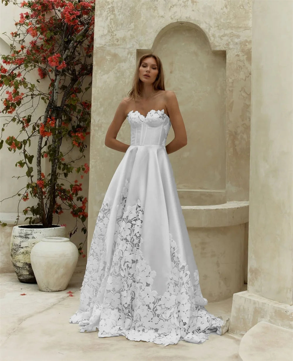 Strapless Corset Floral Lace Wedding Dress – Luxury A-Line Bridal Gown with Embroidered Details | Maison Bridal