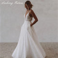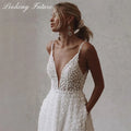Customized Elegant Tulle Wedding Dresse With Pocket Deep V-Neck Spaghetti Strap Bridal Gowns Beach Open Back Vestido Sweep Train