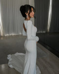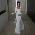 Customized Elegant Wedding Dress 2025 Mermaid Long Sleeve Bridal Gown Square Neck Button Court Train Classic Bride Dress