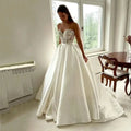 Customized Elegant Wedding Dresses Ball Gown Simple Satin Sleeveless Sweetheart Bridal Dress Beads Lace Satin Bride Gown Custom