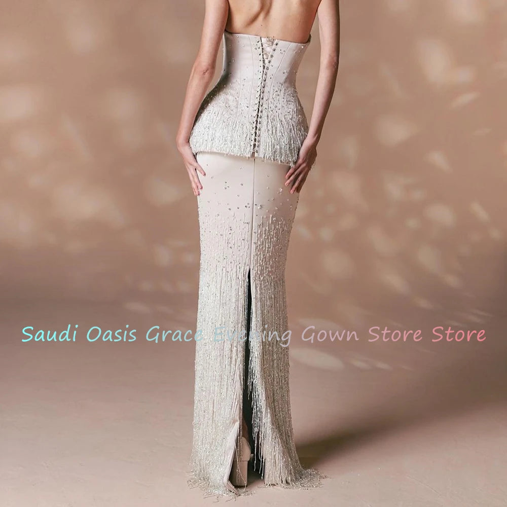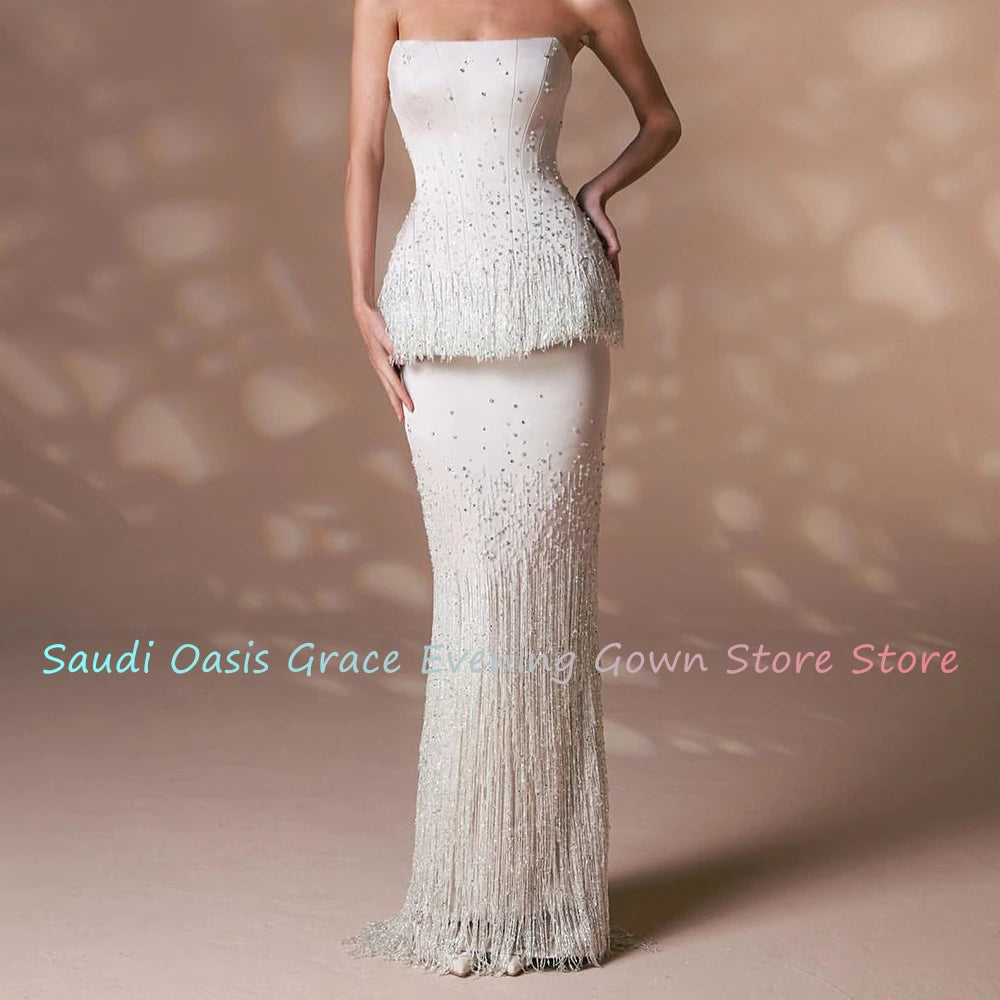 Customized High Quality Crystal Jersey Straight Evening Dress Sexy Floor Length Strapless Sleeveless Lace Up Back vestidos de no