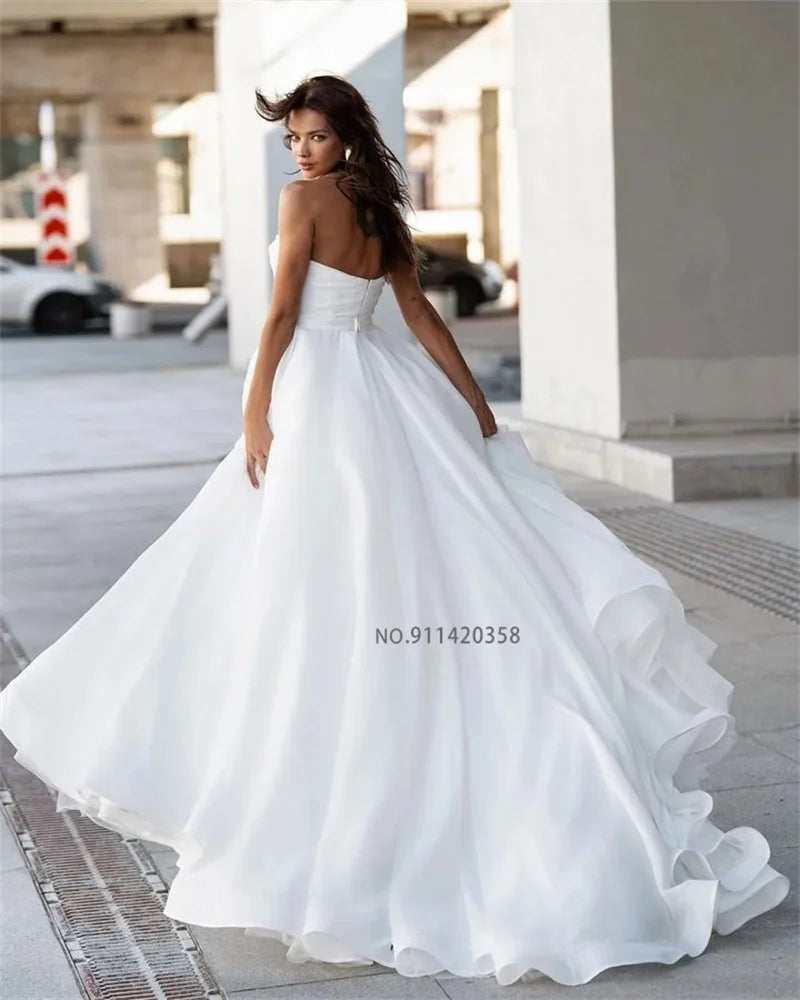 Customized Luxury Sweetheart Neckline Boho Wedding Dresses High Slit Appliques Sleeveless A-Line Bridal Gowns Robes De