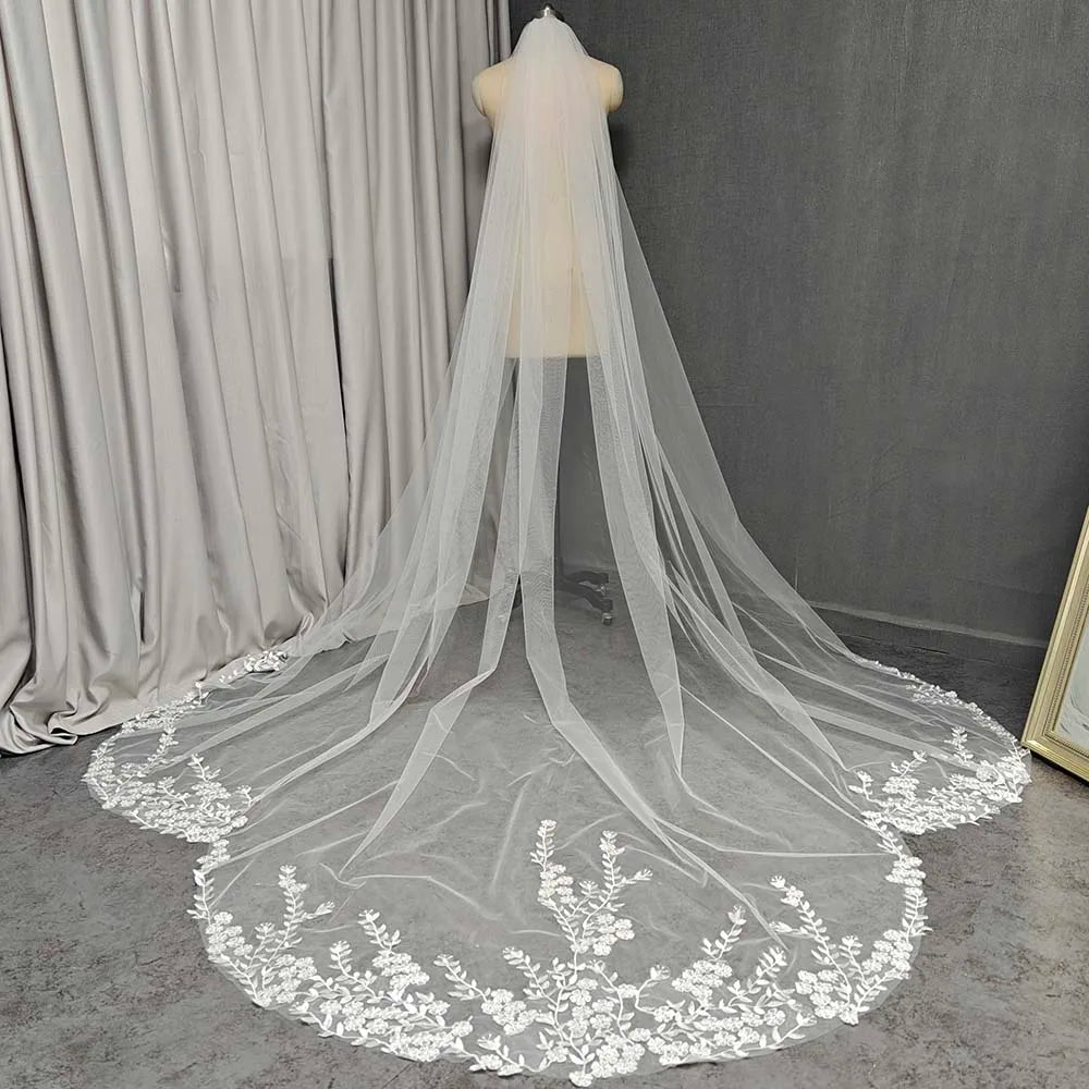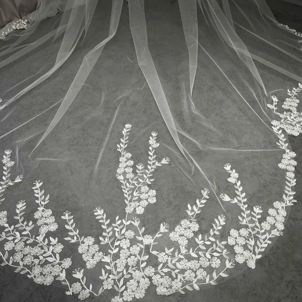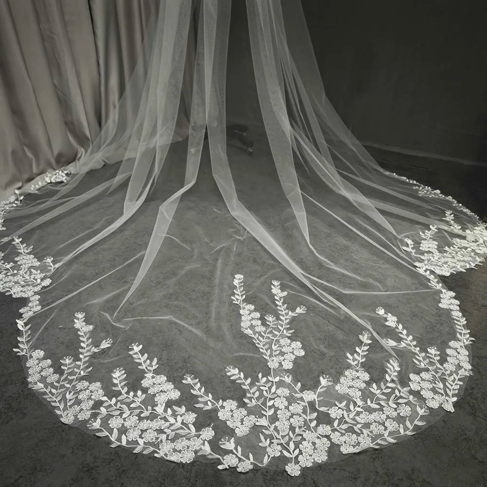 Customized Mermaid Tail Cathedral Wedding Veil, Beautiful Floral Lace Bridal Veil, 3m/3.5m/4m Long Single Tier Veil, Velo