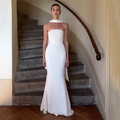 Customized Modern Wedding Dress 2025 Elegant Crepe Sleeveless A-line Brides Wedding Reception Gown Long Ribbon Back Bridal Dress