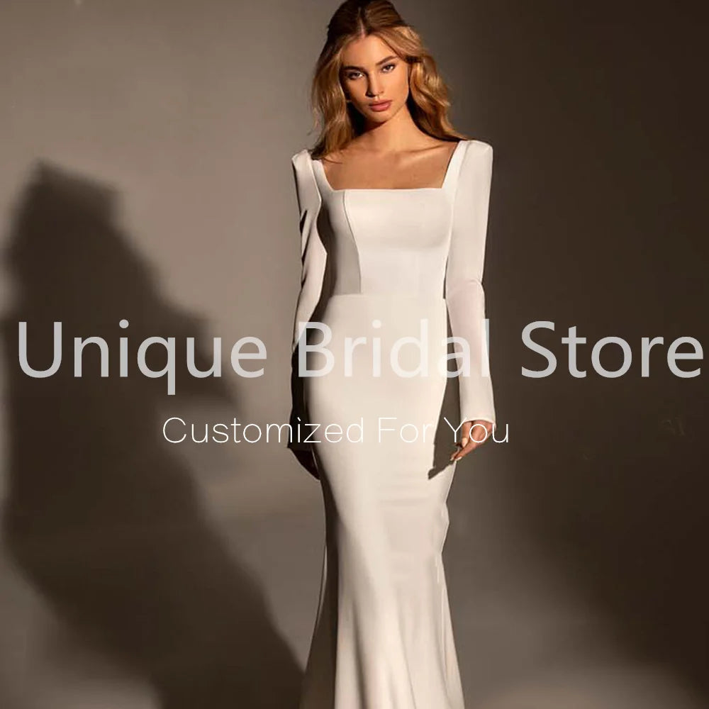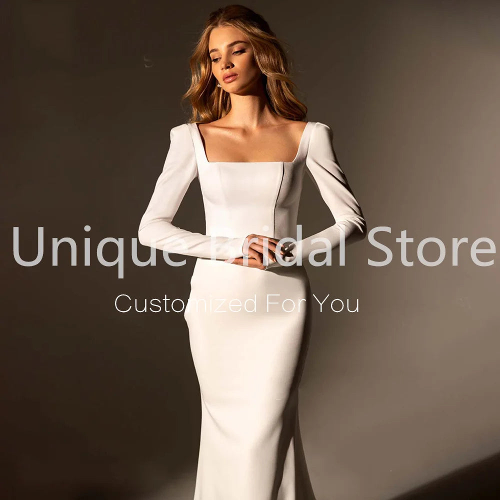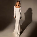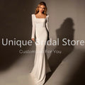 Customized Simple Wedding Dress Boat Neck White Mermaid Long Sleeves Zipper Sweep Train Bride Gowns Vestido De Noiva