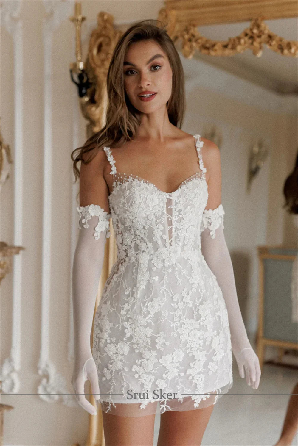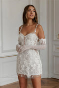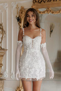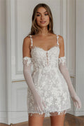 Customized Spaghetti Straps Mini Wedding Dress Applique Lace Short Bridal Dress Gorgeous Gown for Bride Elegant Party Attire