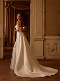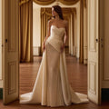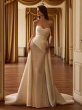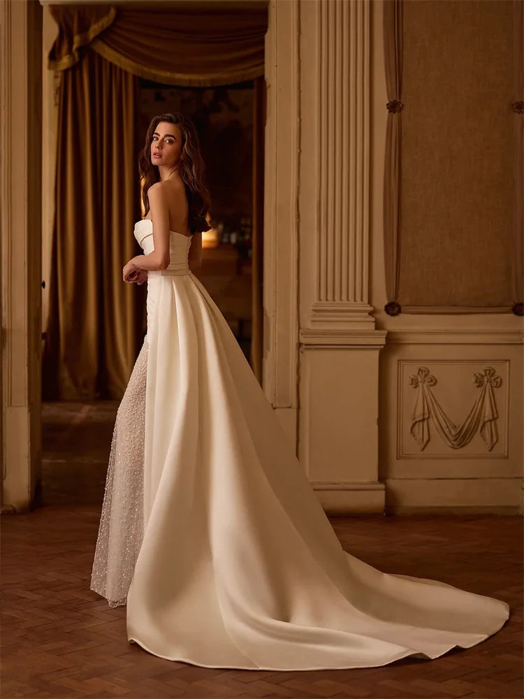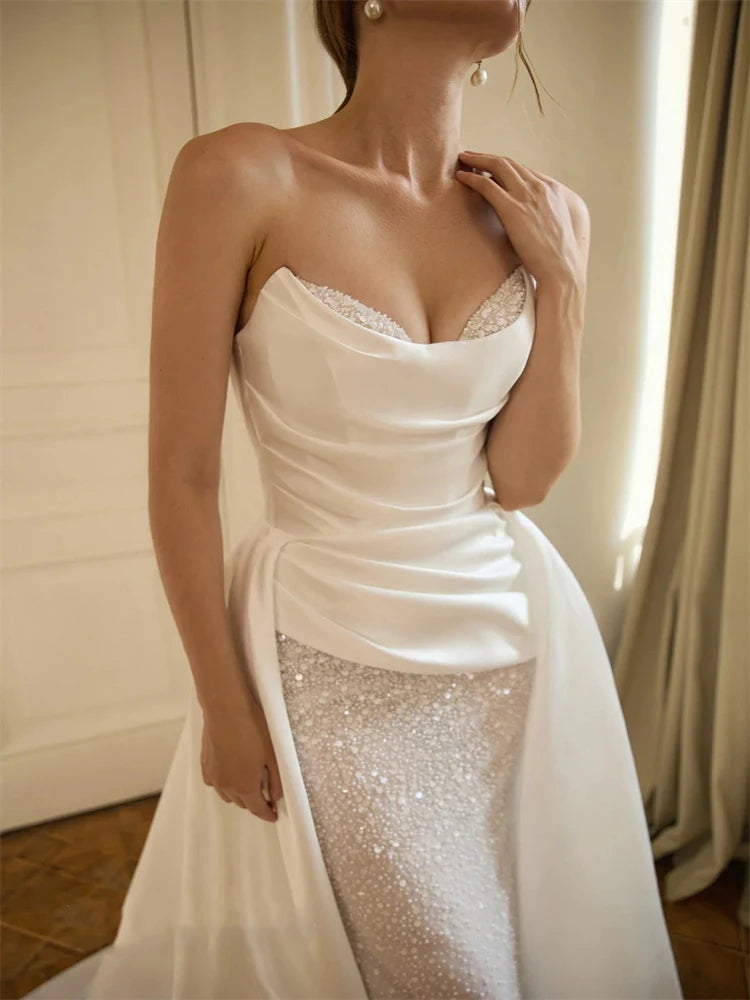 Customized Strapless Sheath Wedding Dress with Sweetheart Neckline Satin Fabric Lace-up Back Floor Length Sweep Train for Bride