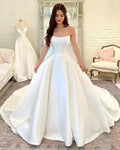 Customzied Satin Wedding Dresses Detachable Shoulder Simple Brdail Gowns Strapless robe de mariée Plus Size Marriage Outfits