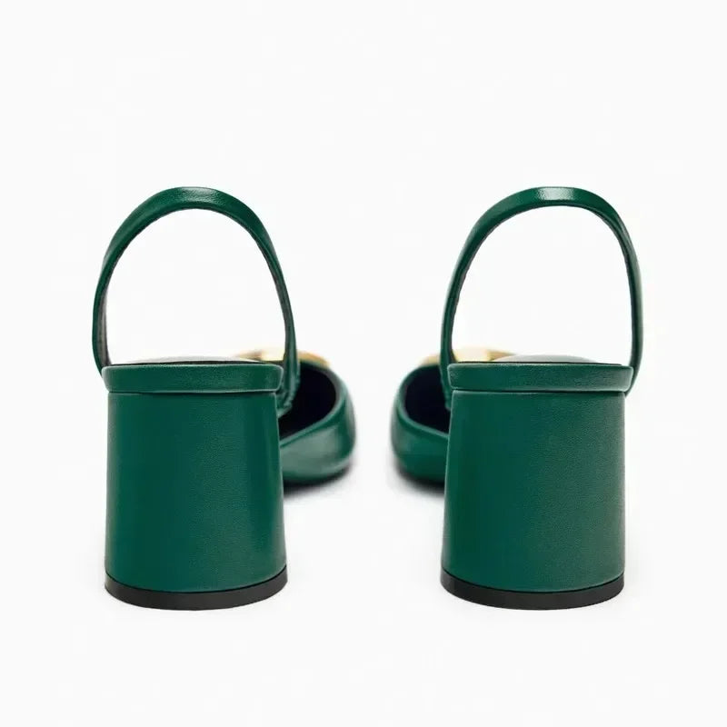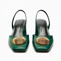 Designer Brand Sandals Women Pumps Metal Decoration Fashion Square Toe Chunky Heels Dress Shoes Elegant High Heels Ladies Mules