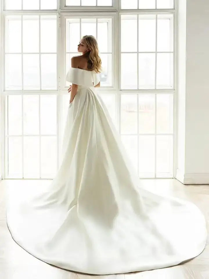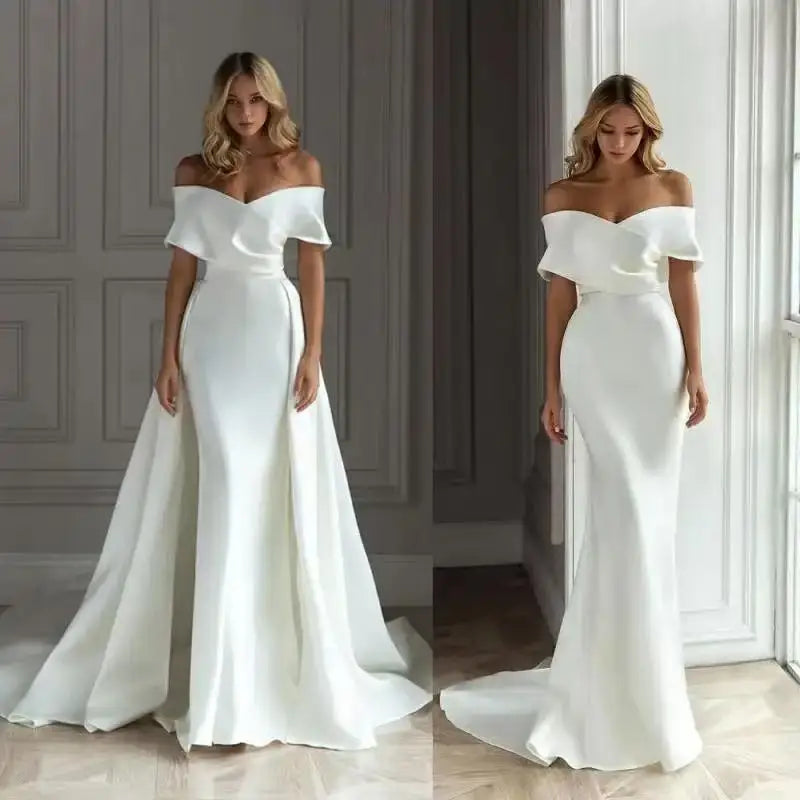 Detachable Trailing Wedding Dress Sweetheart Satin Mermaid Off the Shoulder Bridal Gowns Custom Made Vestidos De Novia