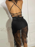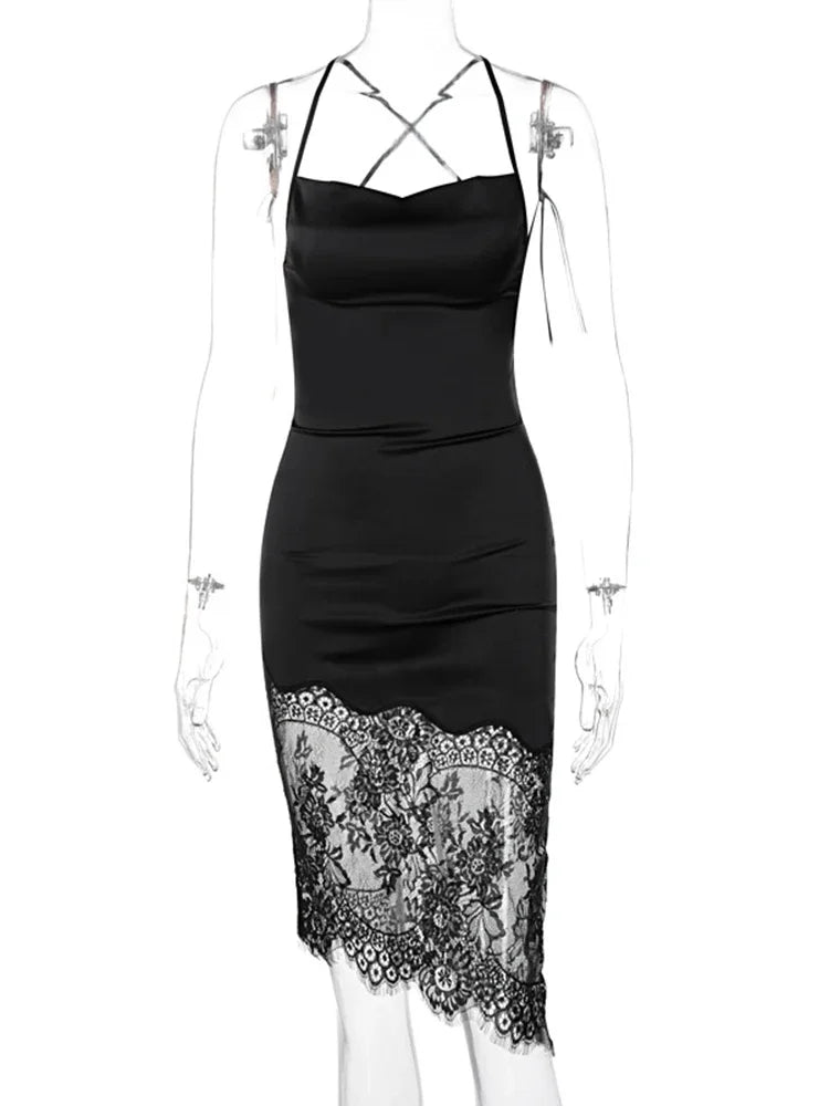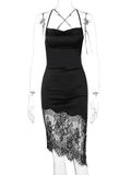 Dulzura Lace Patchwork Satin Mini Dress Women Bodycon Sexy Lace Up Backless Short Dress Party Elegant Clothes Birthday Evening