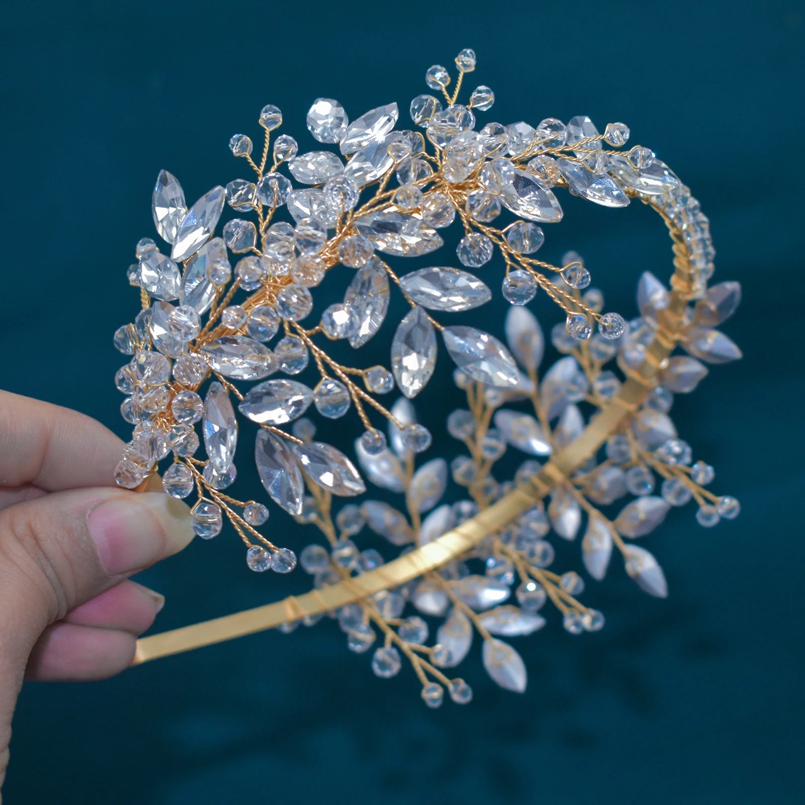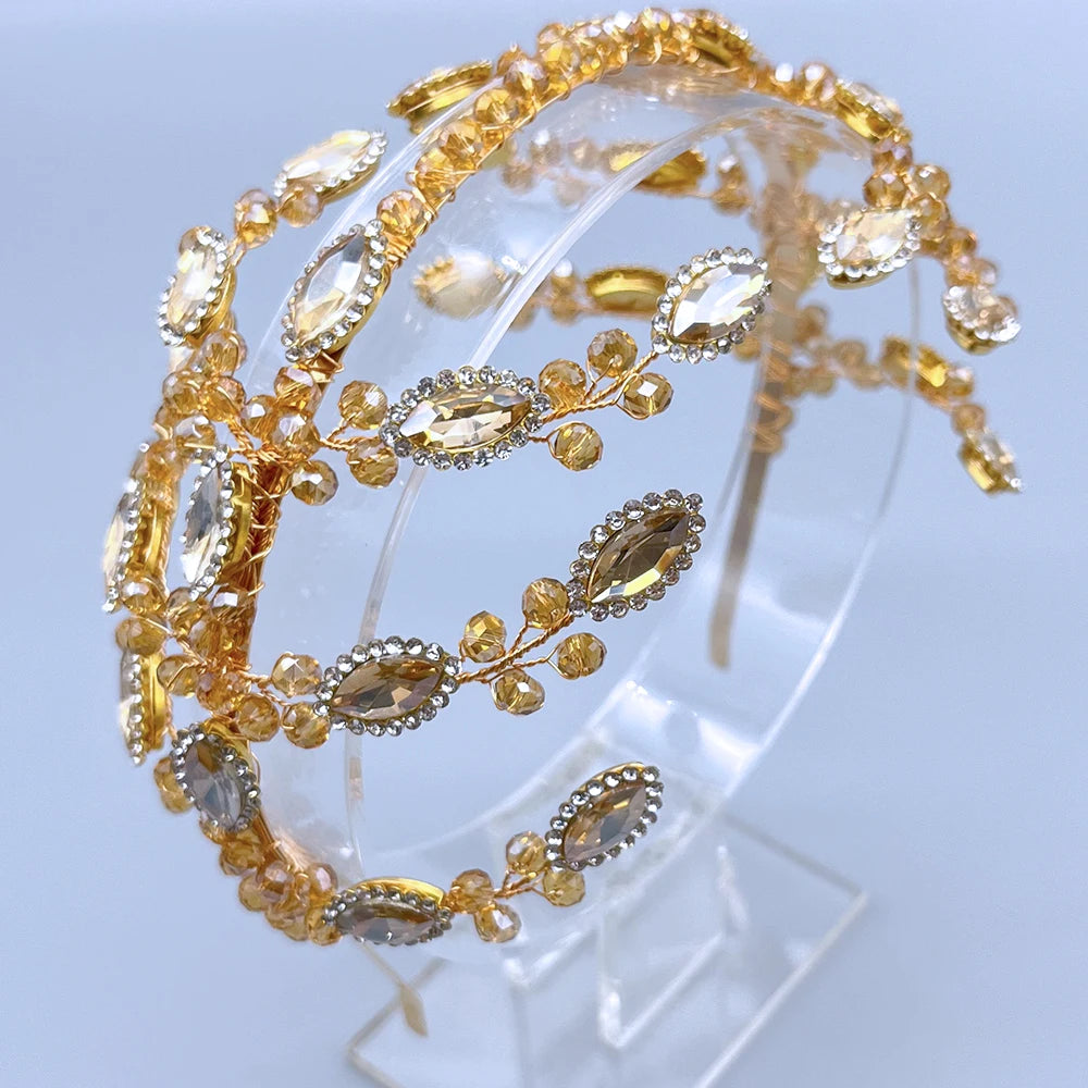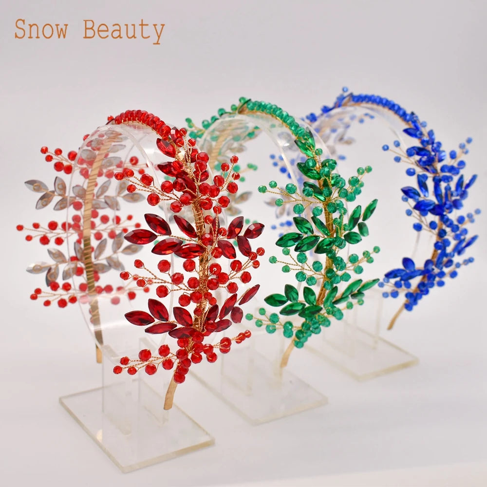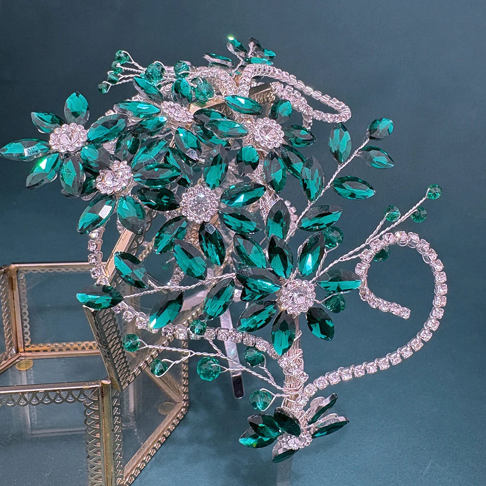 DZ097 Green Wedding Headpiece Crystal Party Hairband Hair Hoop Bohemia Baroque Headband Vintage Bridal Headdress for Women Tiara