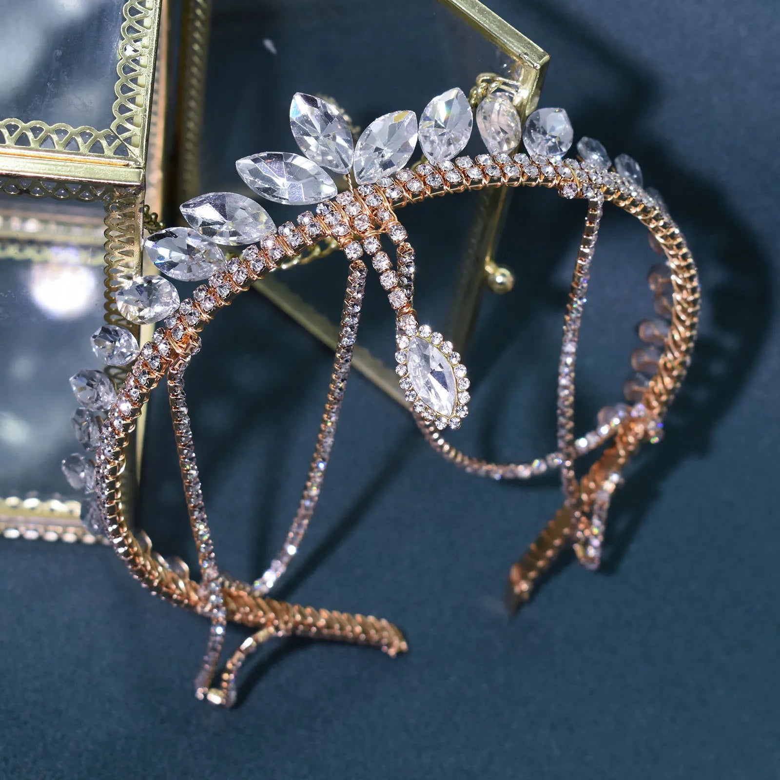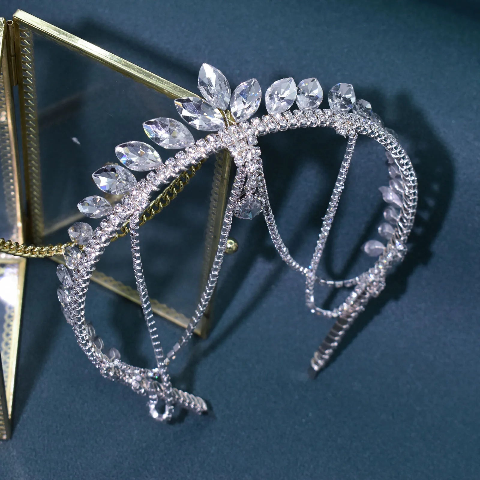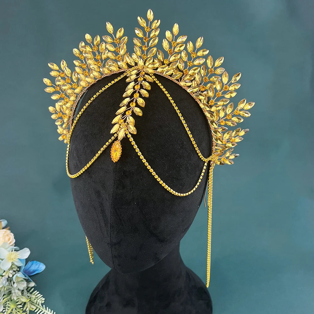 DZ131 Handmade Wedding Hairband Crystal Bride Tiara Bridesmaid Headpiece Women Jewelry Tassels Bridal Crown Baroque Headband