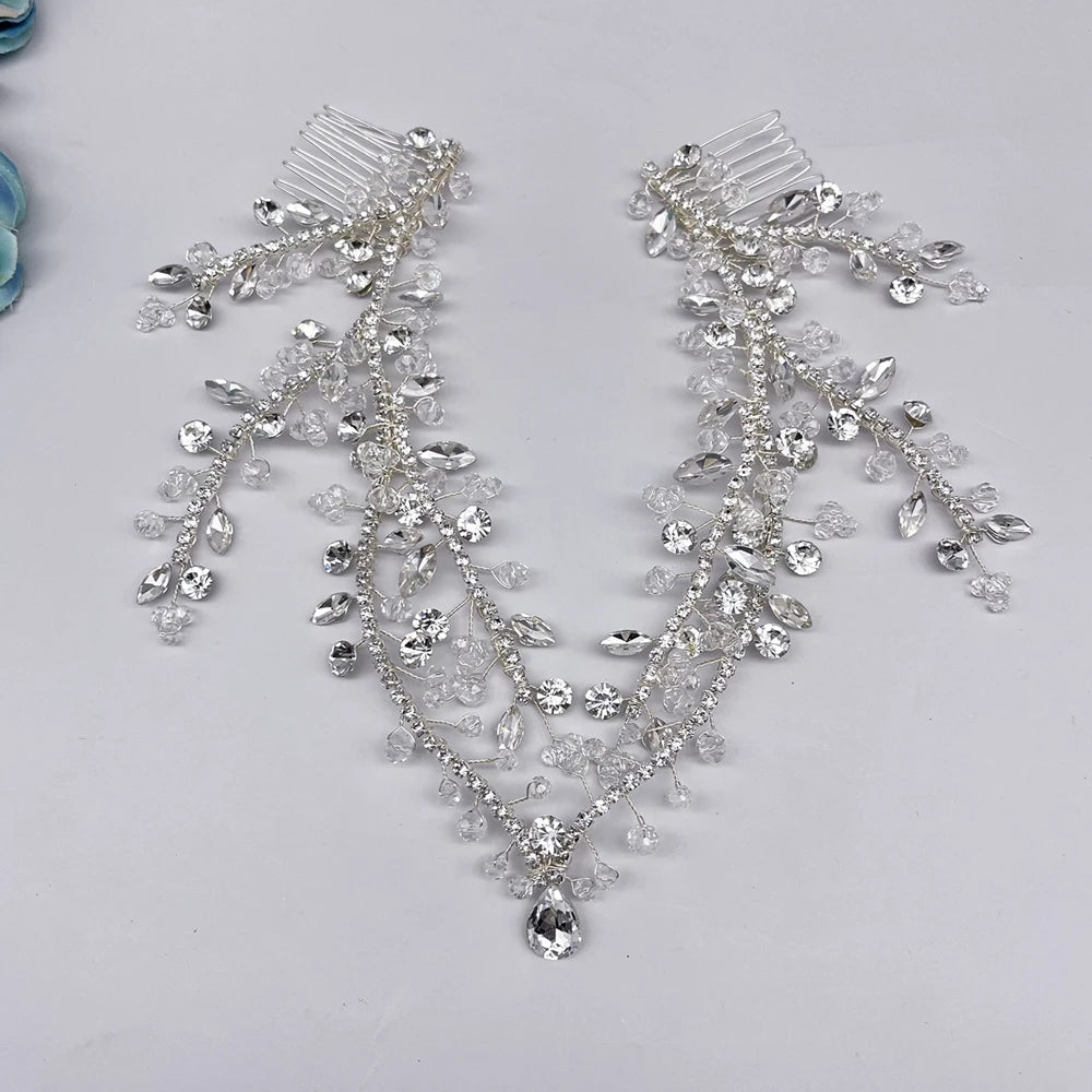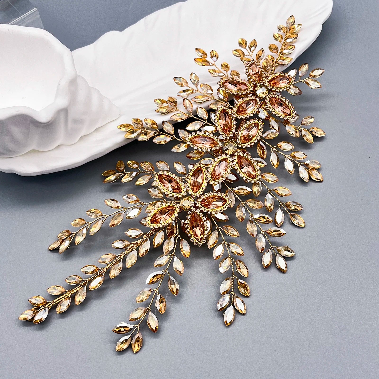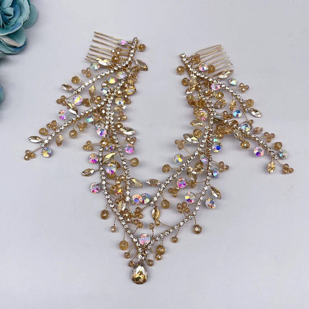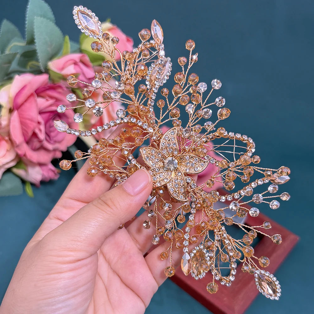DZ256 Champagne Crystal Wedding Headband Trendy Bridal Hair Accessories Handmade Party Headpiece for Women and Girls Tiara
