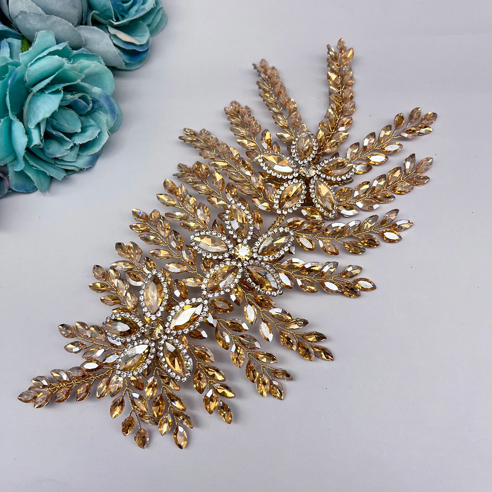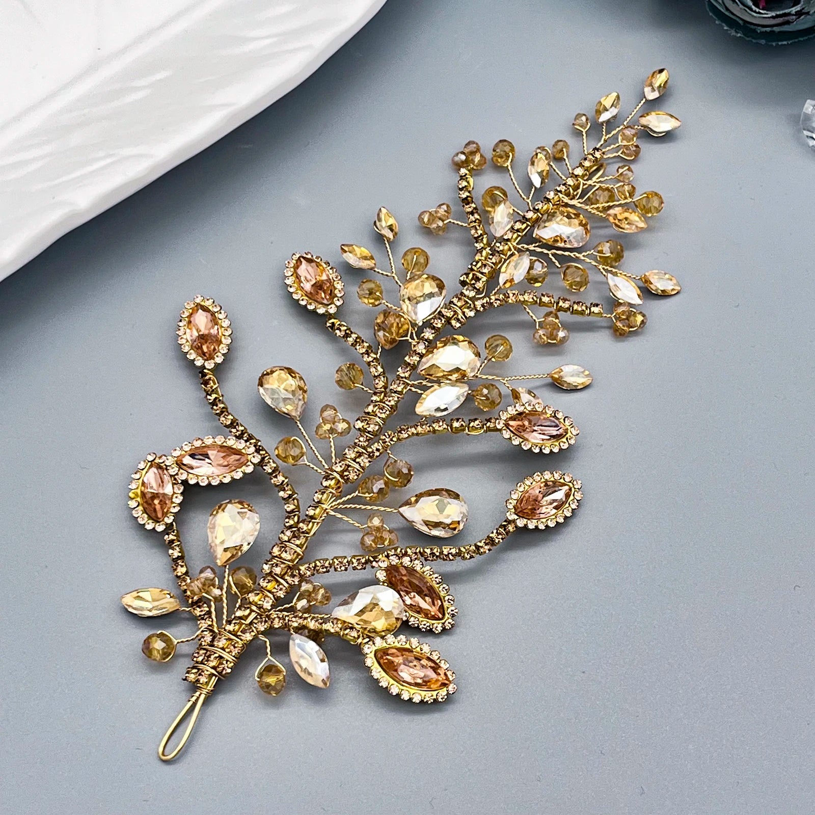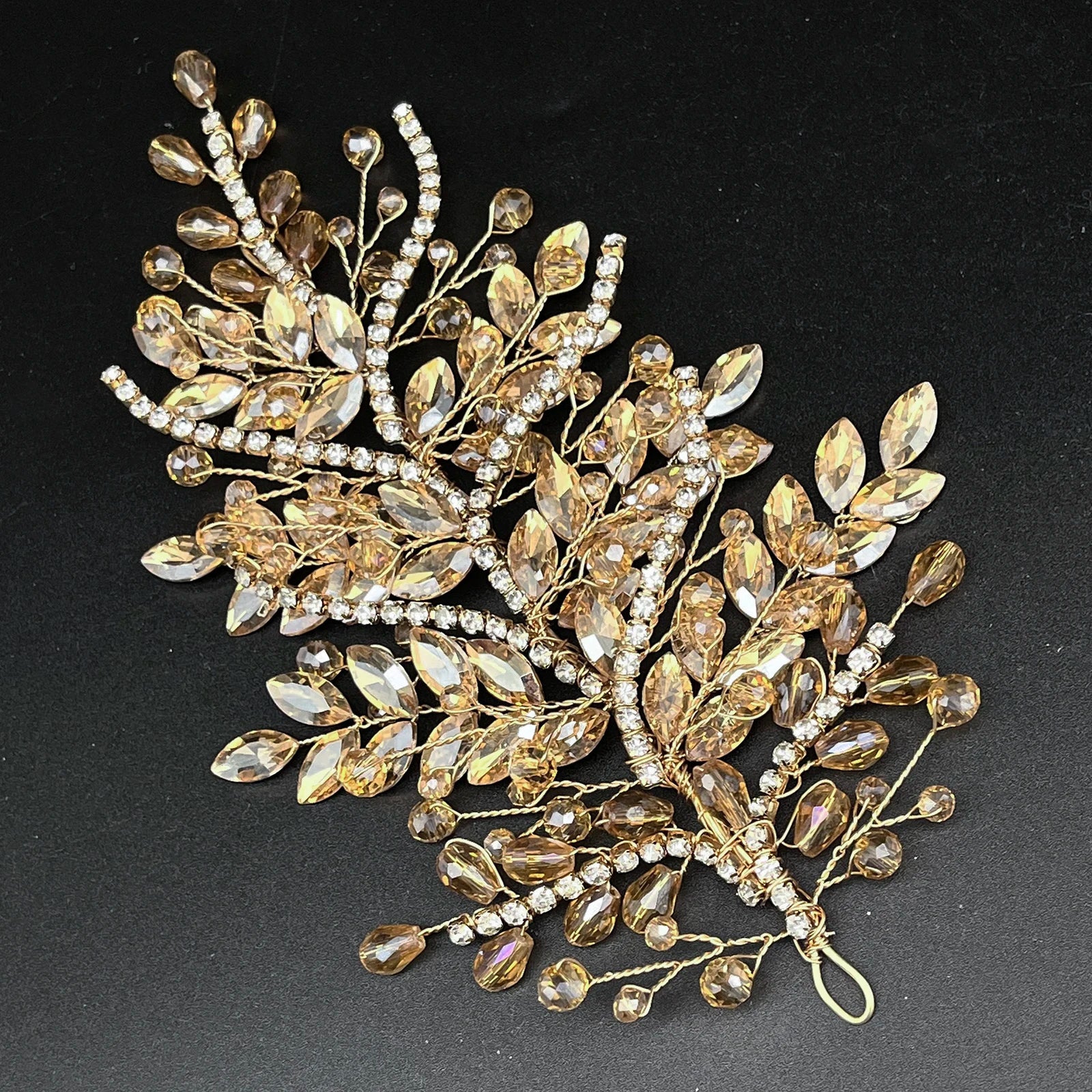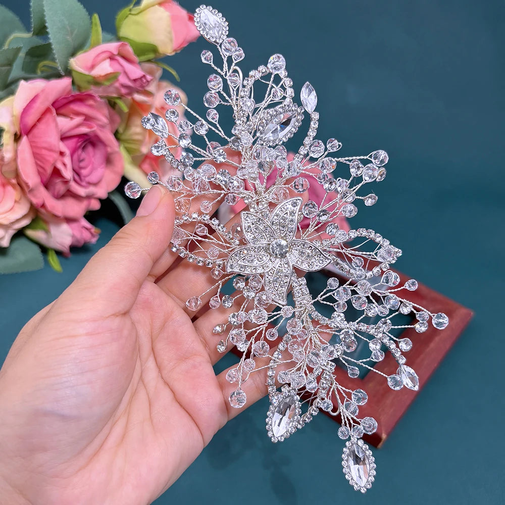 DZ256 Champagne Crystal Wedding Headband Trendy Bridal Hair Accessories Handmade Party Headpiece for Women and Girls Tiara