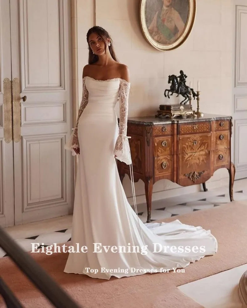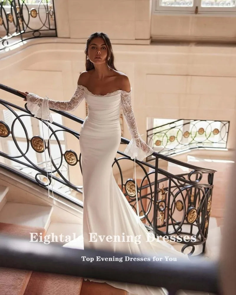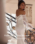 Eightale Boho Arabic Wedding Dress Scoop Lace Customized White Ivory Long Sleeves Mermaid Bridal Gown Robe De Mariée