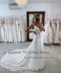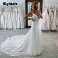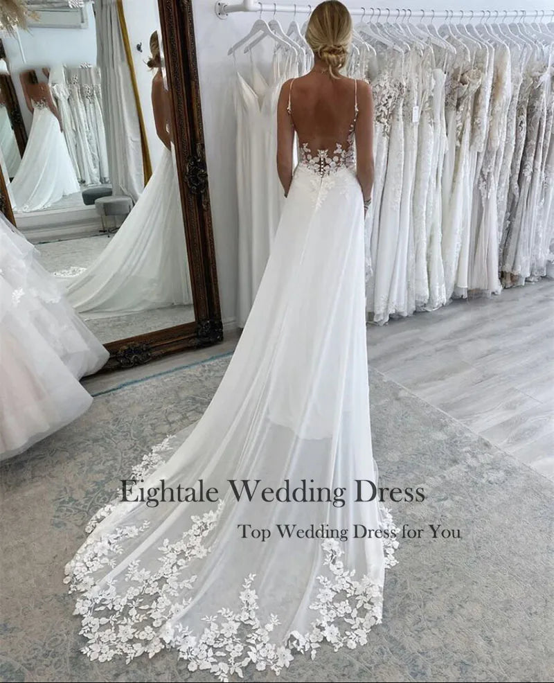 Eightale Boho Wedding Dresses V-Neck Lace Appliques A-Line Spaghetti Straps Customized Court Train Bridal Gown Vestido De Novia