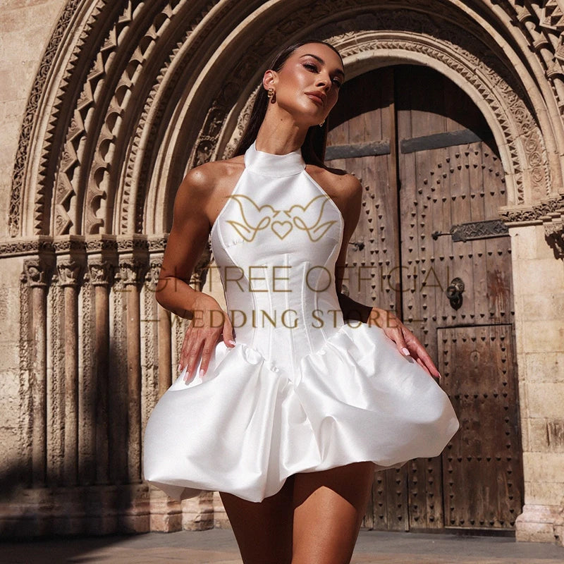 Eightree 2026 Short A-Line Wedding Dresses Halter Backless Sleeveless Bridal Dress Mini Evening Wedding Prom Gowns Customized