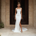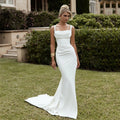 Eightree Simple Mermaid Wedding Dresses Sleeveless Square Collar Bride Dress Boho Beach White Wedding Prom Gowns Custom Size