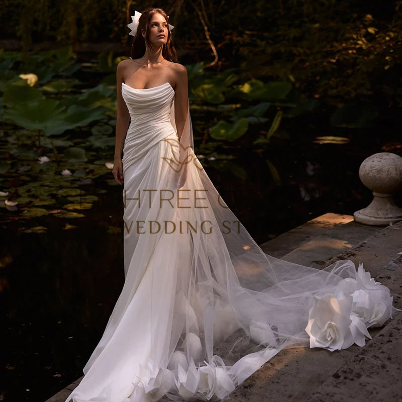 Eightree White Long Wedding Dresses Strapless Sweep Train Mermaid Bridal Gowns Formal Wedding Gowns Vestidos De Novia Customized