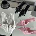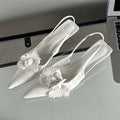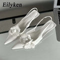Eilyken Fashion Sexy Flower Pointed Toe Thin Low Heels Pumps Women Elegant Wedding Slingback Mules Shoes Zapatos De Mujer