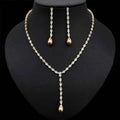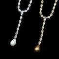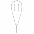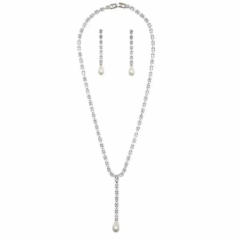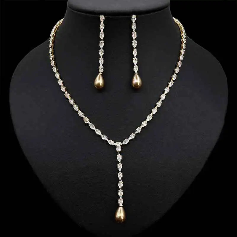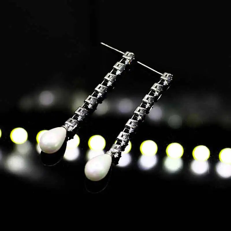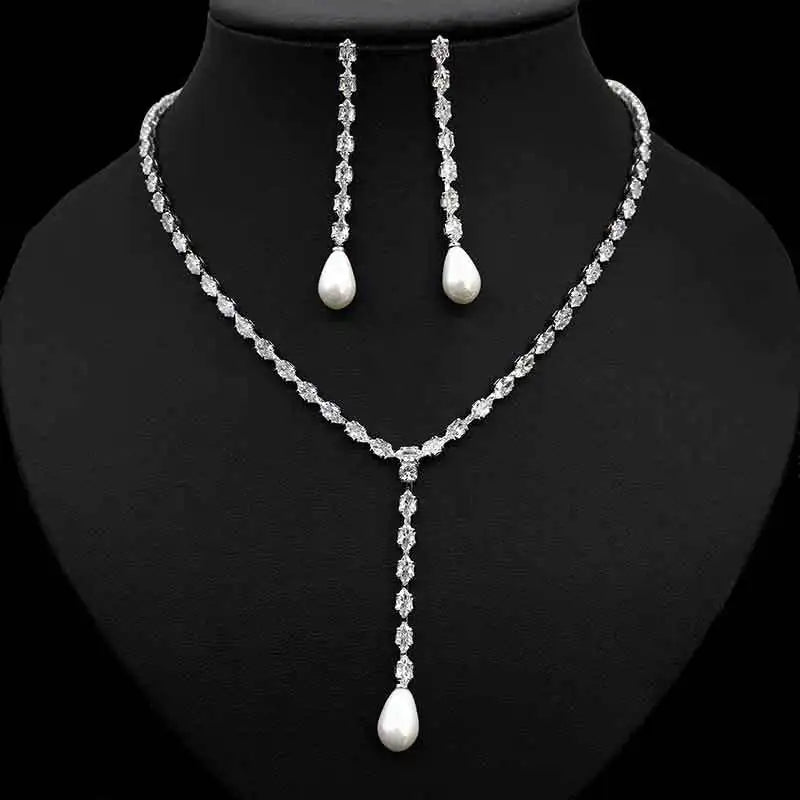 Elegant Cubic Zirconia and Long Drop Pearl Necklace and Drop Earrings Wedding & Part Jewelry Set 2023