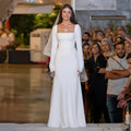 Elegant Long Sleeve Square Neck A-Line Wedding Dress With Train Customizable Bridal Gown For Bride Reception Party Ceremony