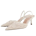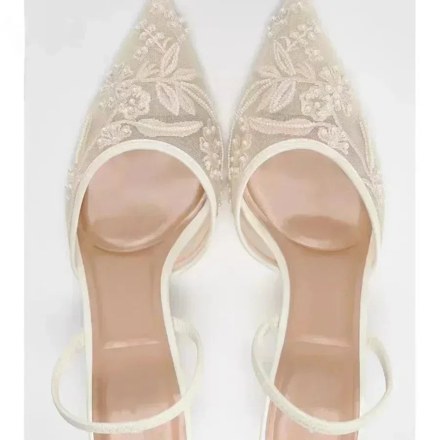 Elegant Mesh Embroidered Flowers Designer Heeled Sandals Women 2025 Summer Sexy Slingback Pointed Toe Thin High Heels Dress Shoe