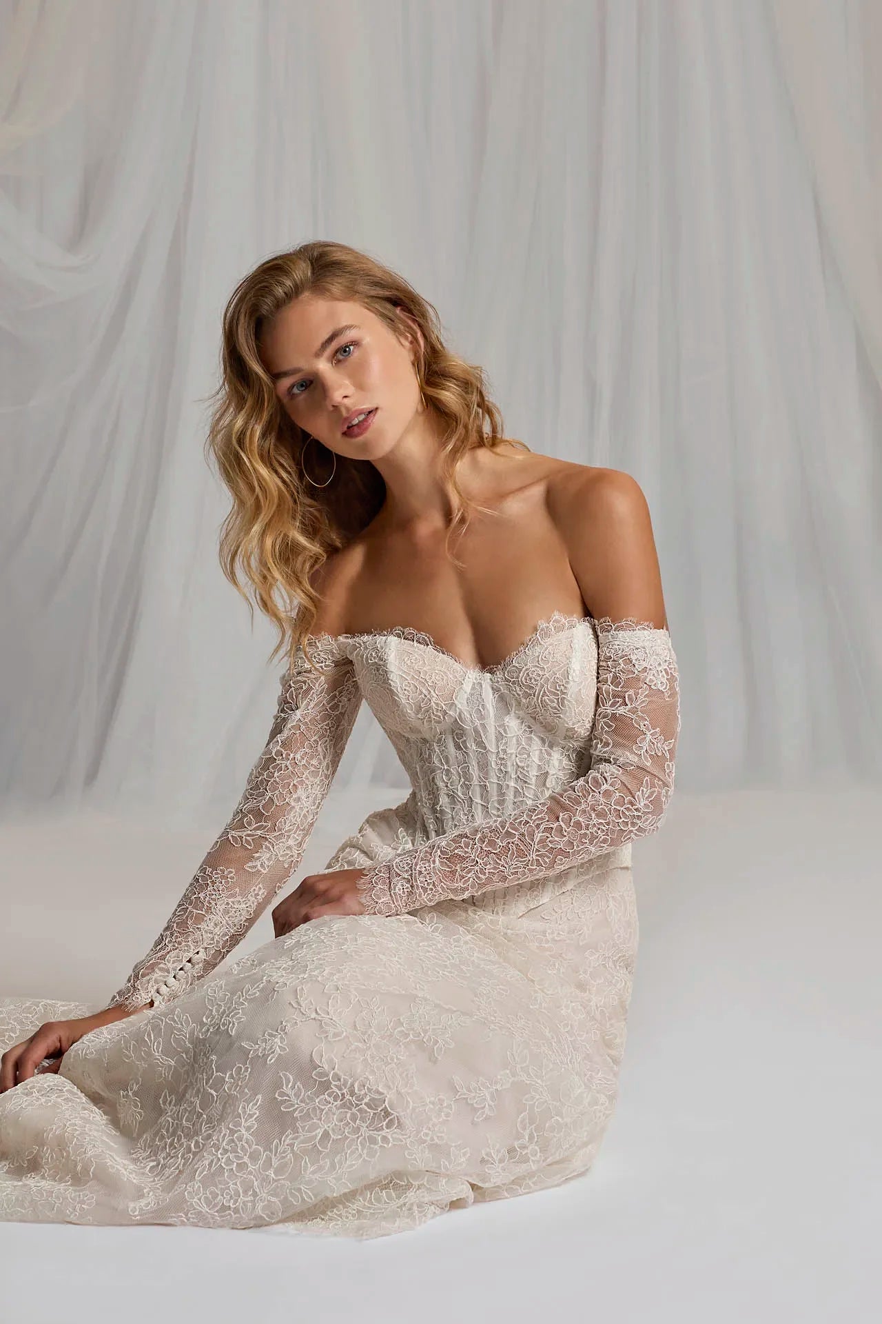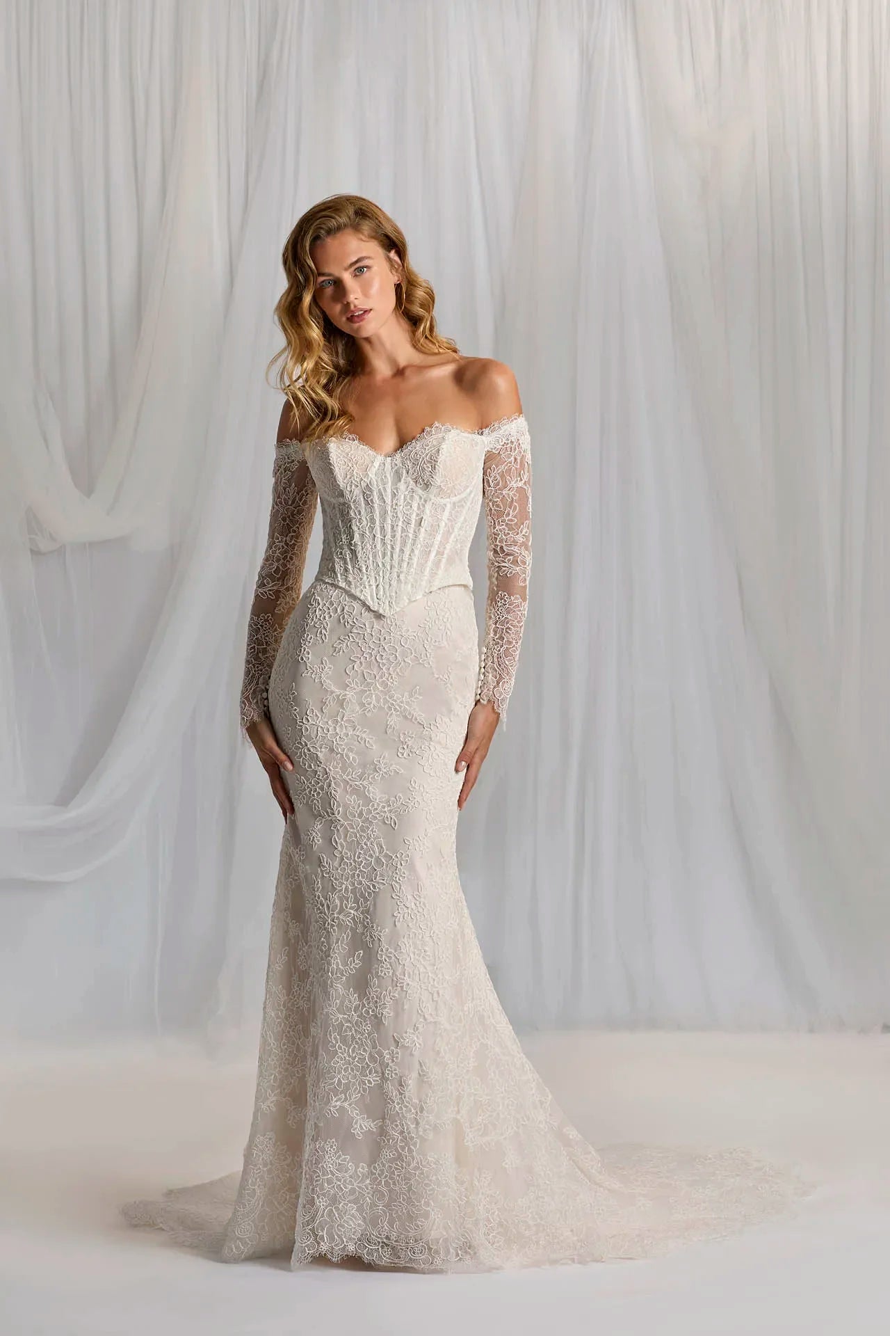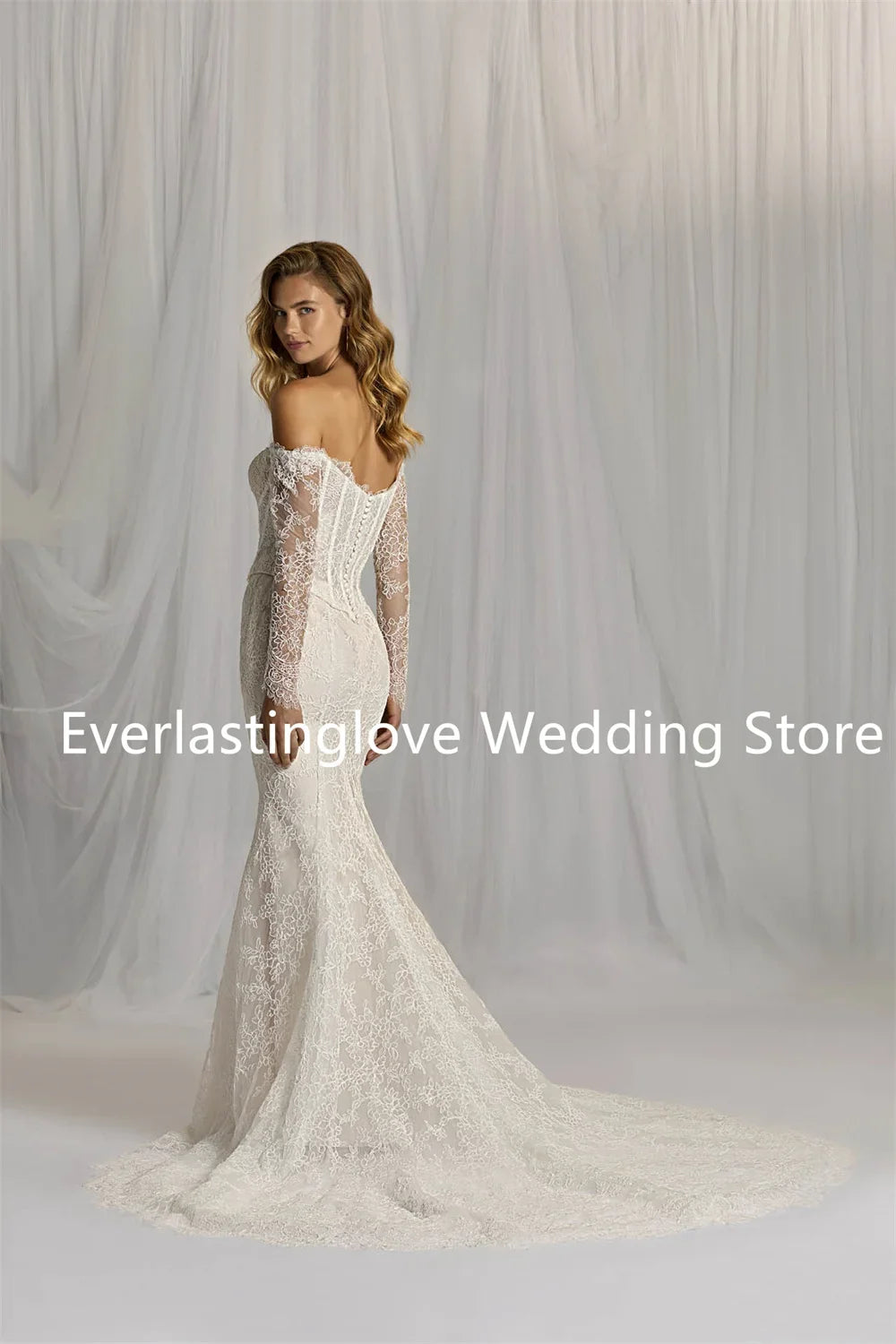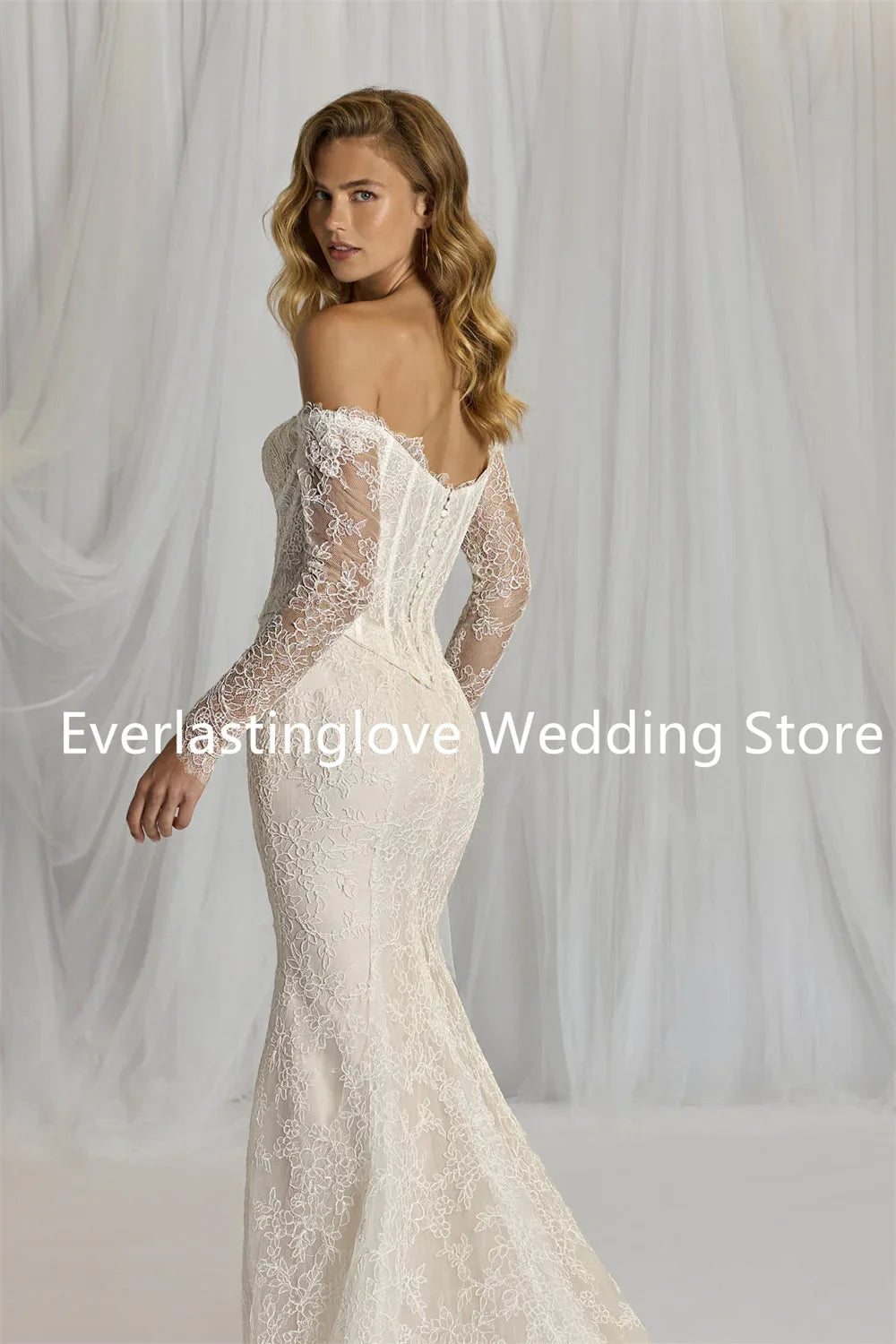 Elegant Off The Shoulder Long Sleeves Sweethat Full Lace Mermaid Wedding Dresses Custom Made 2026 Rode De Morrie