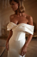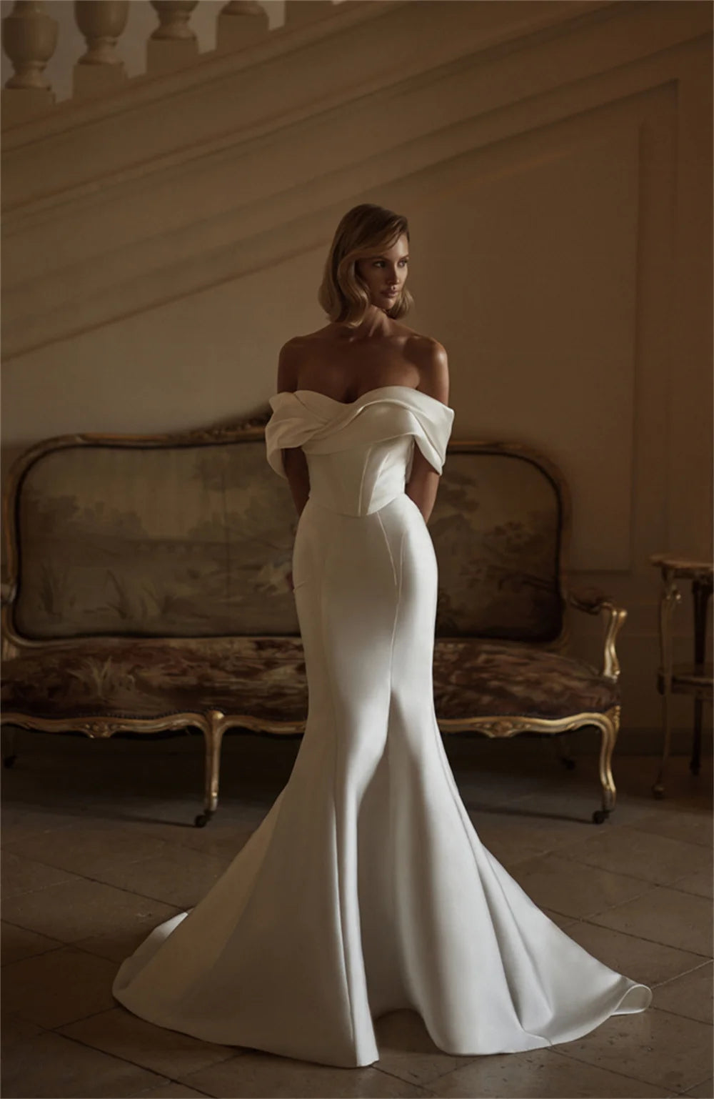 Elegant Off The Shoulder Pleat Sweetheart Satin Mermaid Wedding Dresses Sweep Train Custom Made 2025 Vestido De Noival