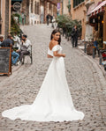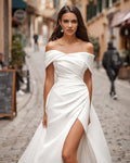 Off Shoulder Satin Wedding Dress – Modern Mermaid Bridal Gown with Side Slit & Train | Maison Bridal
