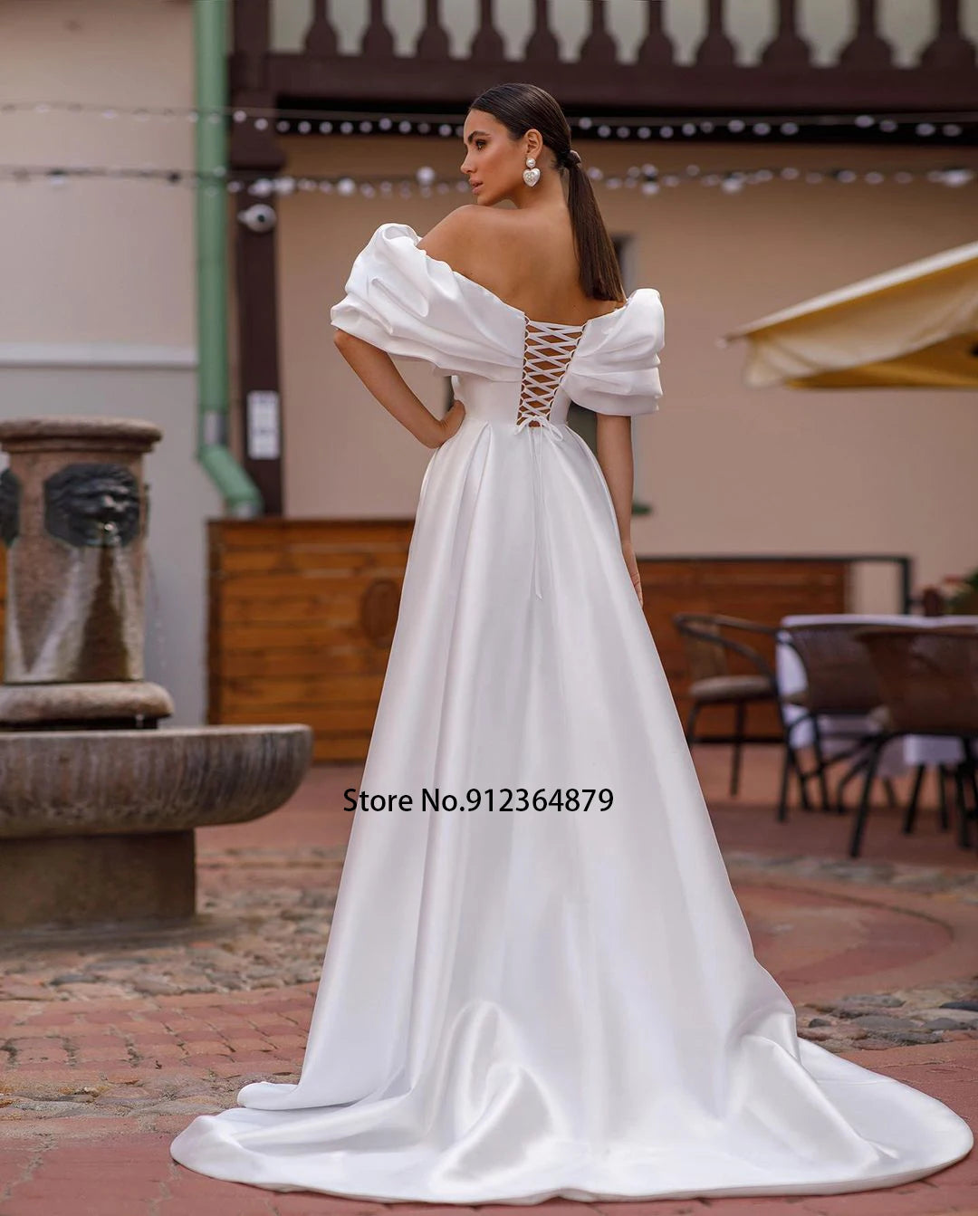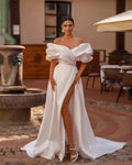 Elegant Off The Shoullder Sweetheart Satin A Line Wedding Dresses Side Slit Pleat 2023 Formal Bridal Grown kleider damen hochzei