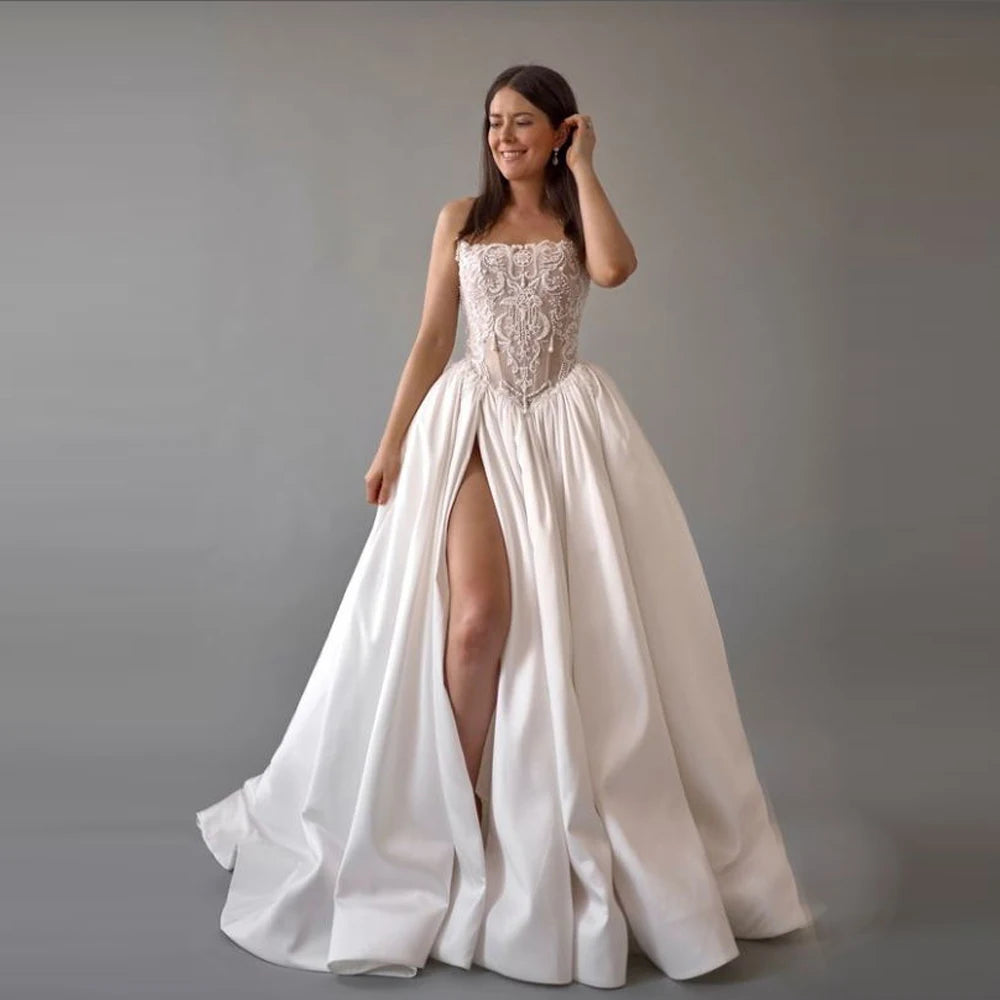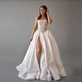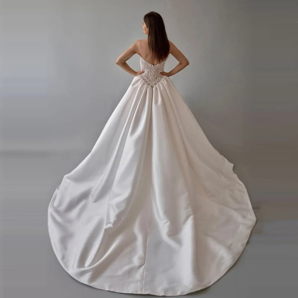 Elegant Off White Satin Women Wedding Dresses Sexy Sleeveless A-Line Gowns Mopping Length Banquet Vestidos De Novias Customized
