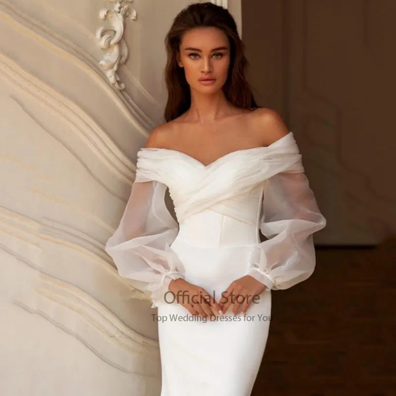 Elegant Sweetheart Wedding Dress Women Mermaid Long Sleeve White Off The Shoulder Bridal Gown Train Vestido De Novia Customized