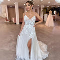 Elegant Two Straps V-neck Lace Wedding Dresses Pleat Side Slit Custom Made 2026 Vestido De Noival