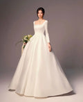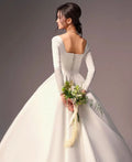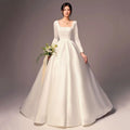 Elegant Wedding Dress Women Customized Satin Wedding Gown Long Sleeve Square Neck Backless A-Line Bridal Dress Formal Outfit