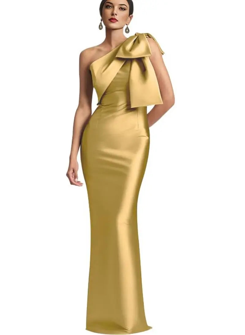 Evening Dress Women Elegant Tight Sexy Satin Single Shoulder With Bow Bridal Formal Long Ball Gowns Trend Pageant Dress