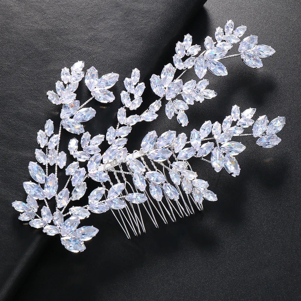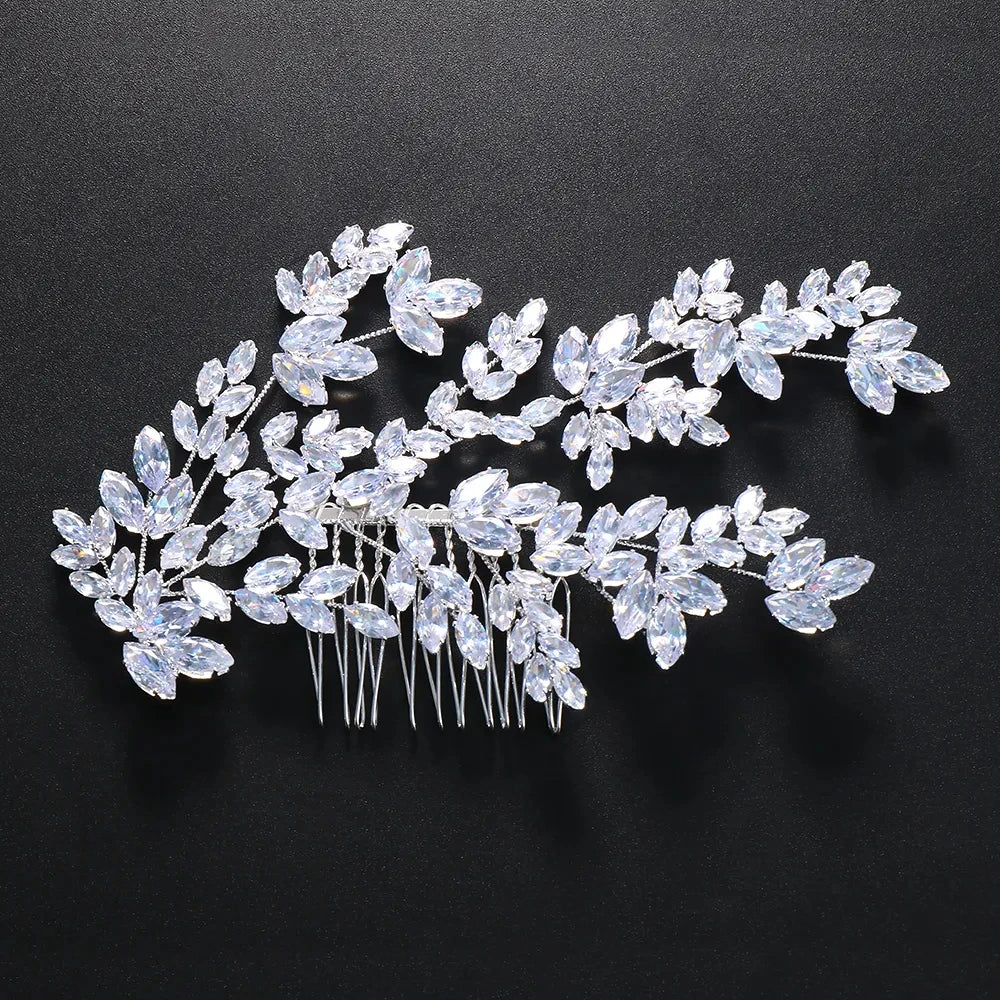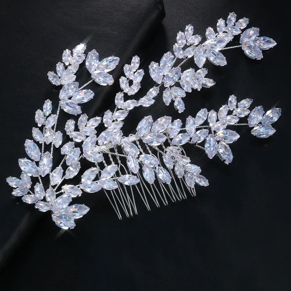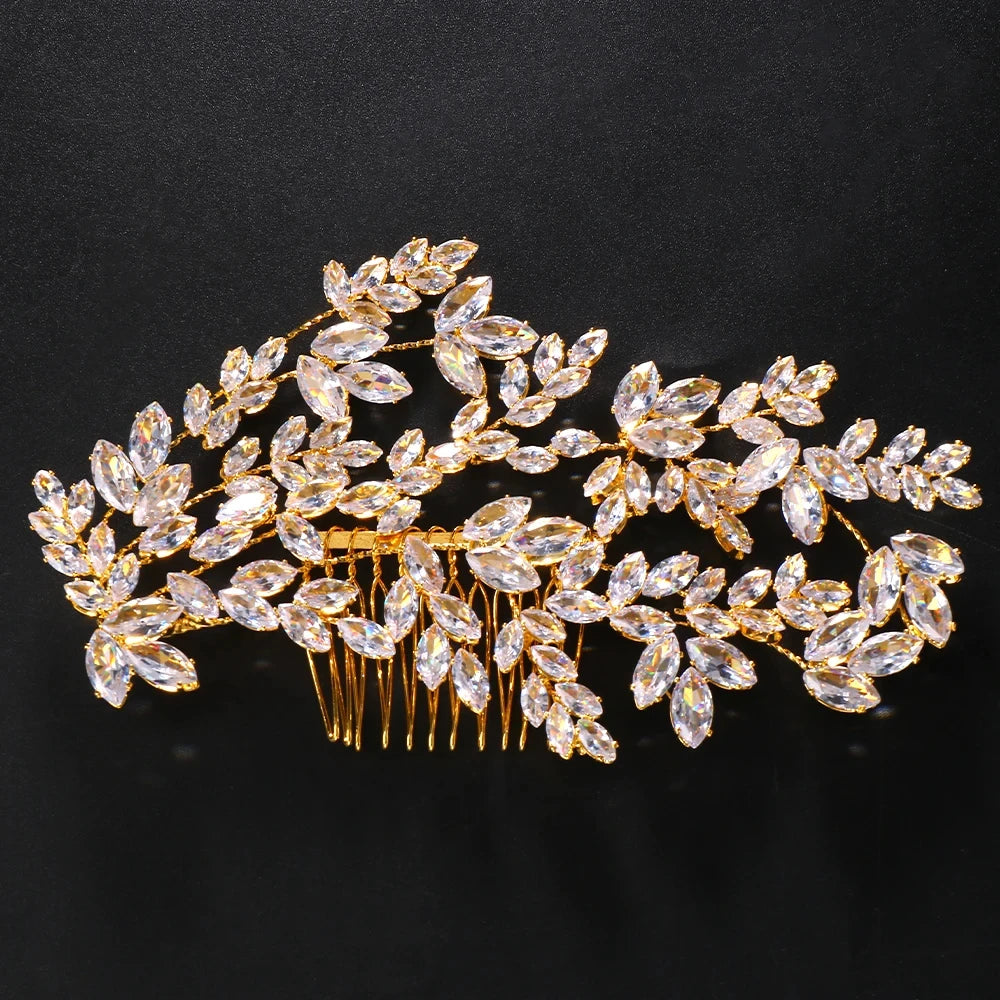 Fashion Leaves Zircon Bridal Hair Comb Birthday Hair Accessories Luxury Jewelry Baroque Crystal Wedding Headband for Women