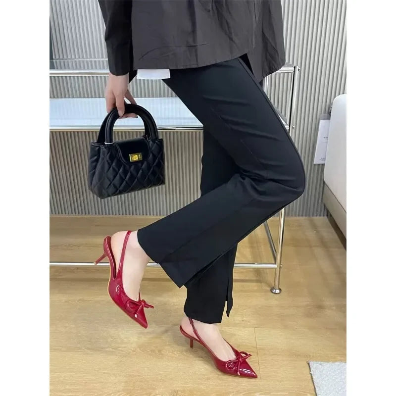 Fashion women's high heels sandals red sexy bow ankle belt women's pointed wedding party 2025 prom women's shoes large size