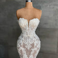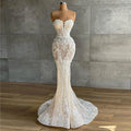 Flavinke Customized Mermaid Lace Ivory Wedding Gown Strapless Wedding Dresses Sleeveless Wedding Dresses Bride robe de mariée