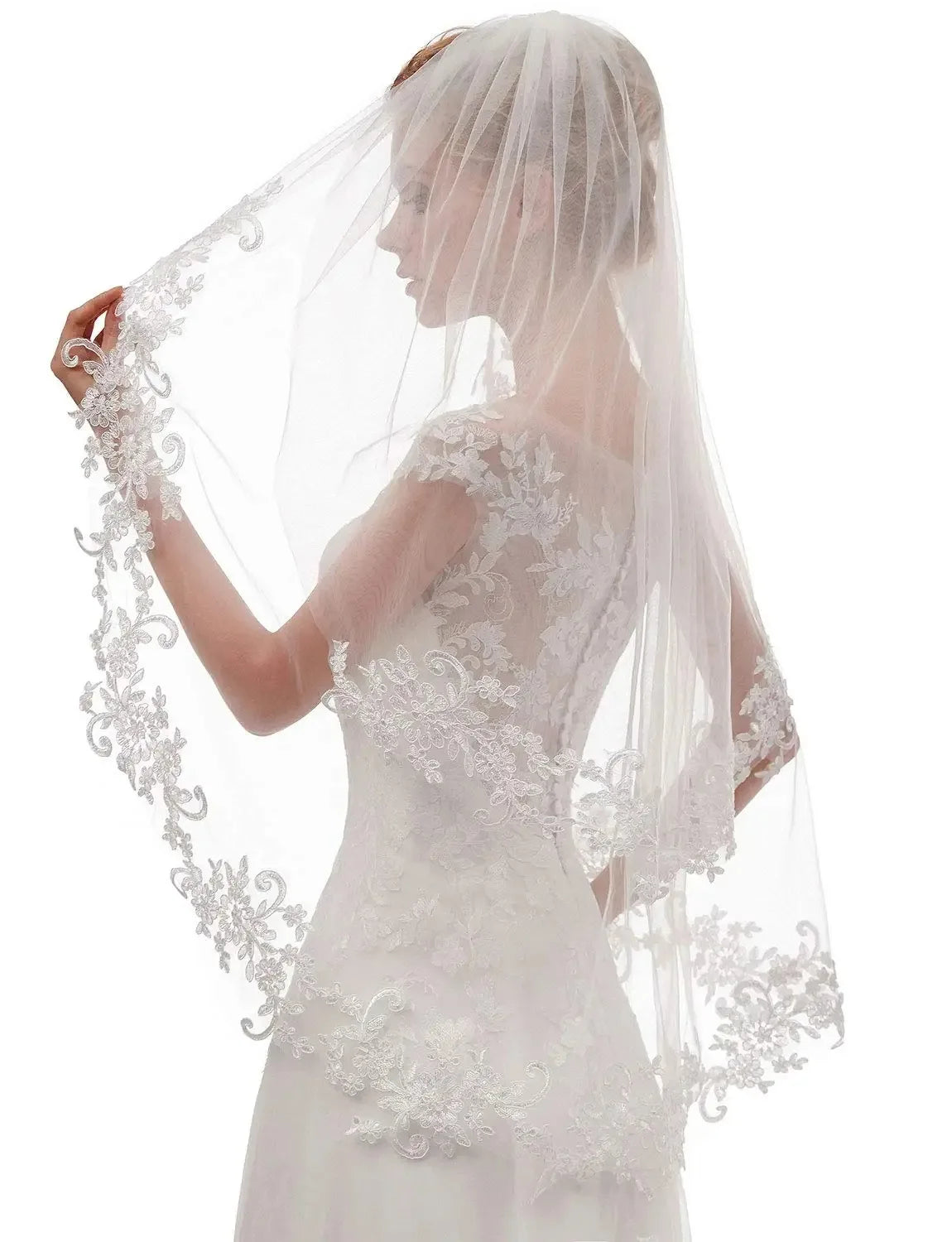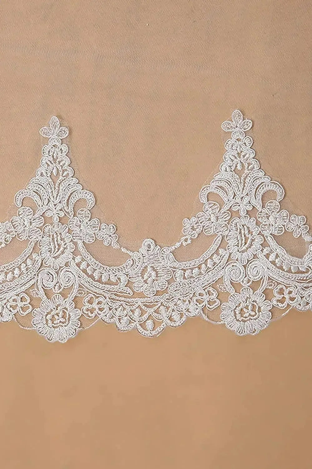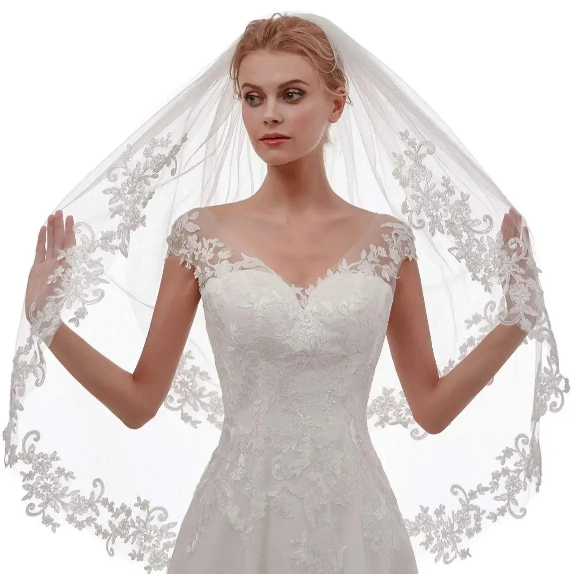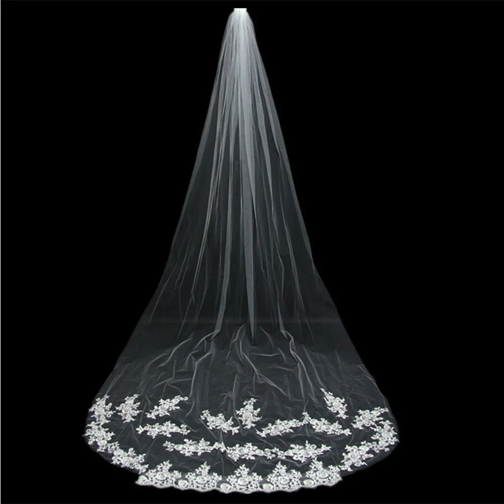 Flower Lace Edged Appliques Veil with Comb 1 Tier Veil 3mx1.5m Long Cathedral Length Wedding Bride Accessories