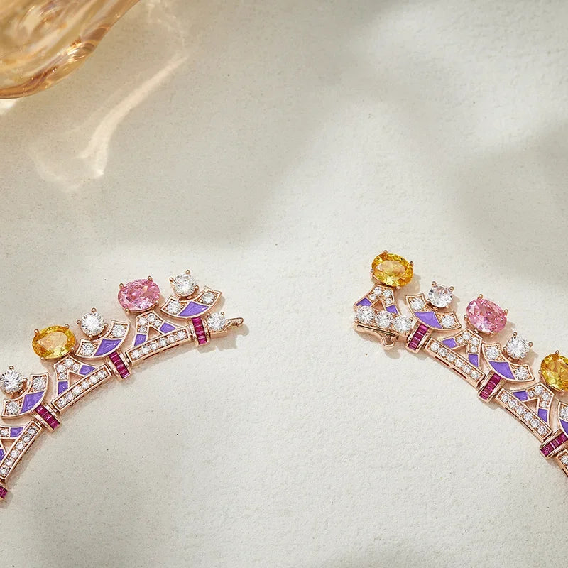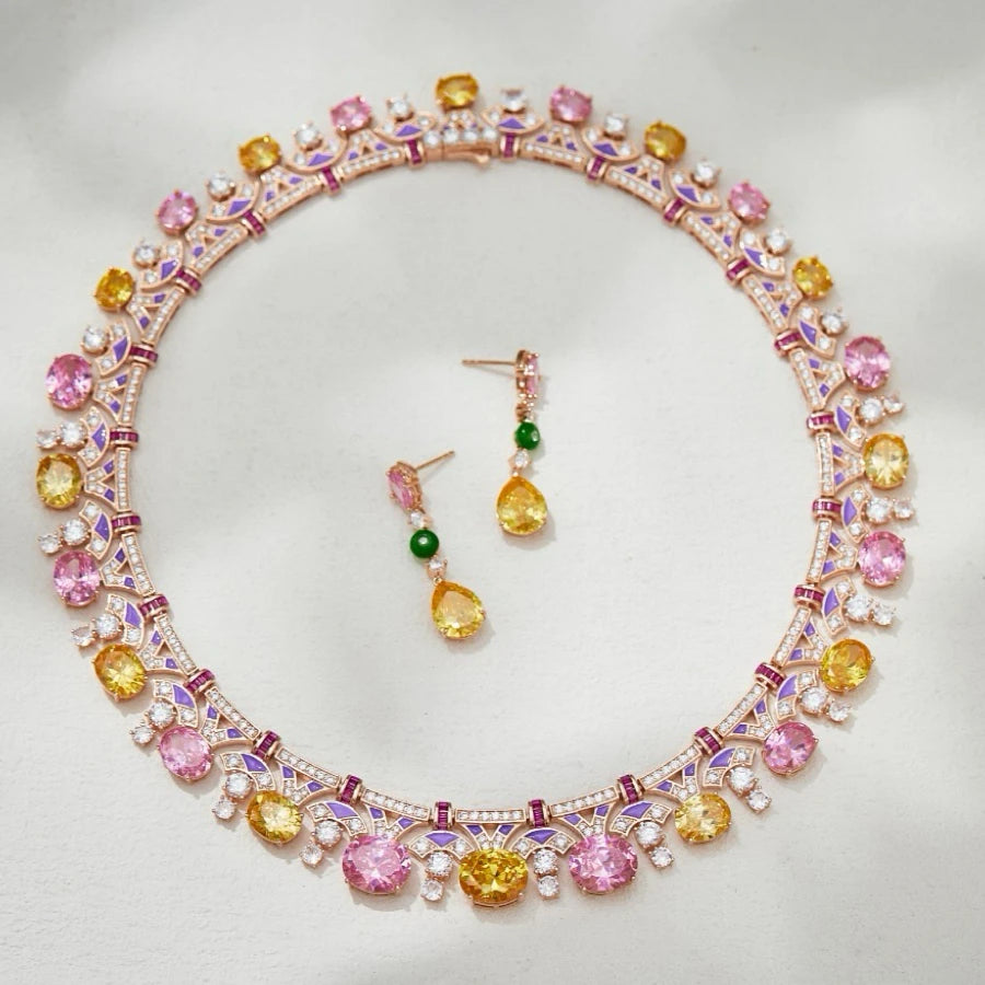 Gazing JewelryLuxurious and charming AAA cubic zirconia flower-shaped necklace and lotus earrings, a jewelry set for women's wed