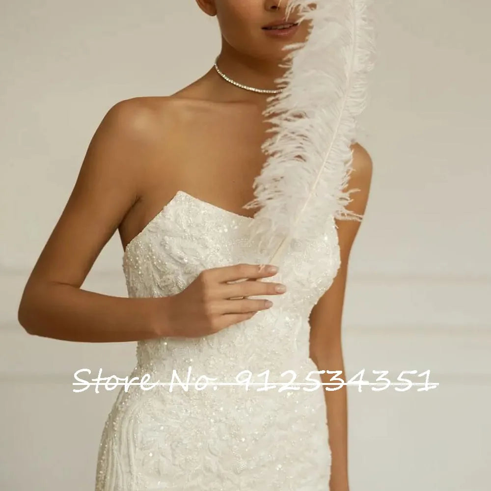 Gelinlik Boat Neck Mermaid Wedding Dresses with Dechable Train Sequined Beading Luxury Vestidos De Novia Vintage Bridal Gowns