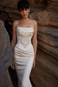 Glamorous sculpted off-the-shoulder Satin Two Piece Wedding Dresses Beaded Applique Custom Made 2026 Rode De Morrie